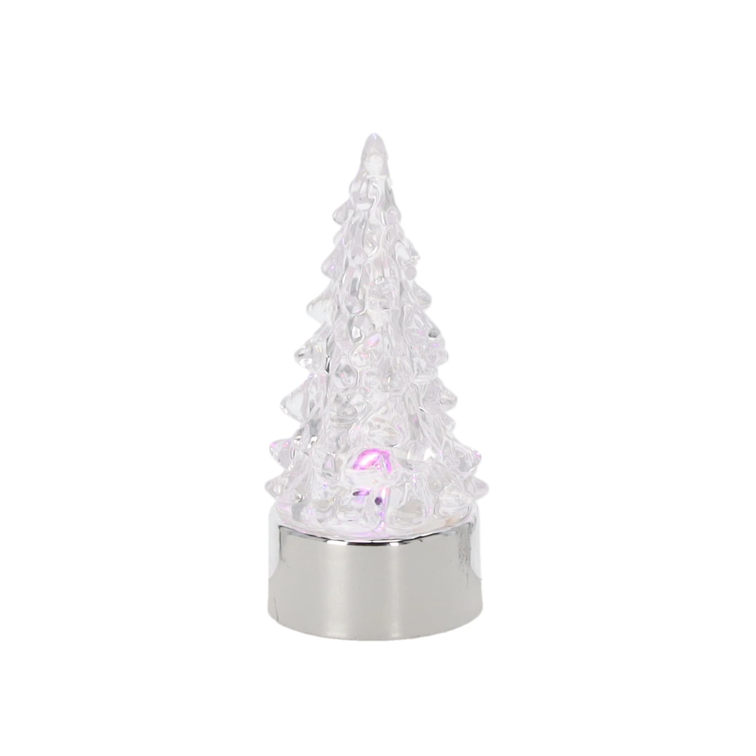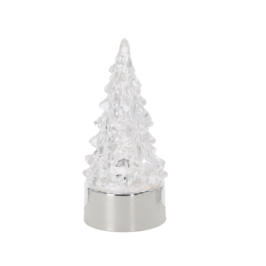 Stylowa, świecąca dekoracja, która natychmiast wprowadza magiczny, świąteczny nastrój. Przezroczyste, fasetowane wykonanie choinki pięknie rozprasza zmieniające się kolory, a metaliczna podstawa dodaje całości premium wyglądu. Dzięki zasilaniu bateryjnemu ustawisz ją gdziekolwiek, bez kabli.