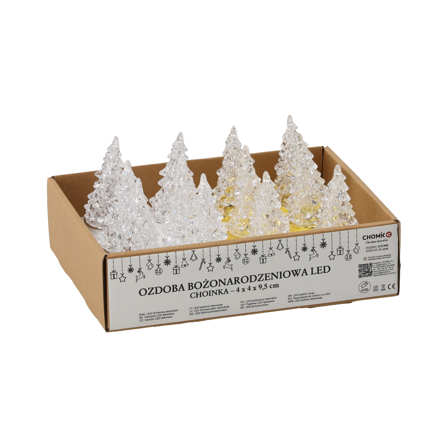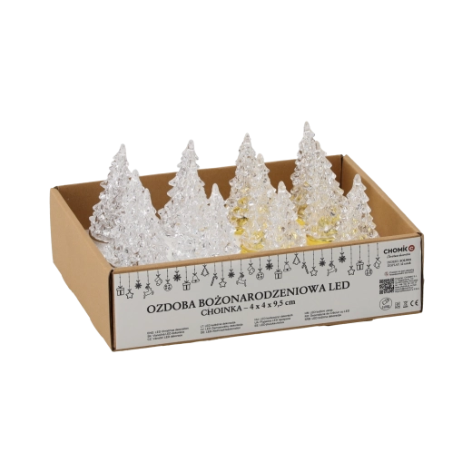 Przezroczysta, fasetowana choinka rozprasza światło we wszystkie strony, tworząc efektowną grę barw i przytulną, świąteczną atmosferę.