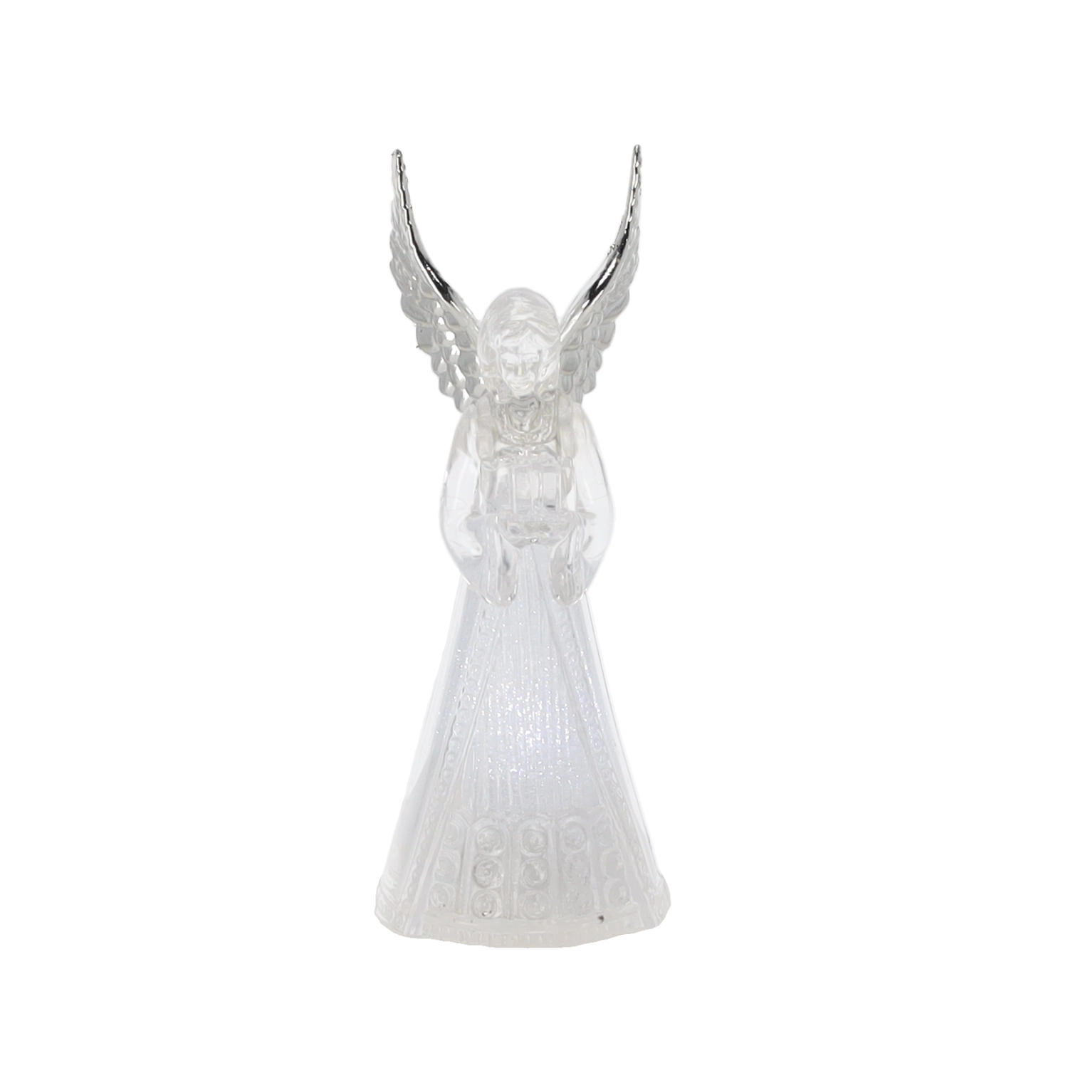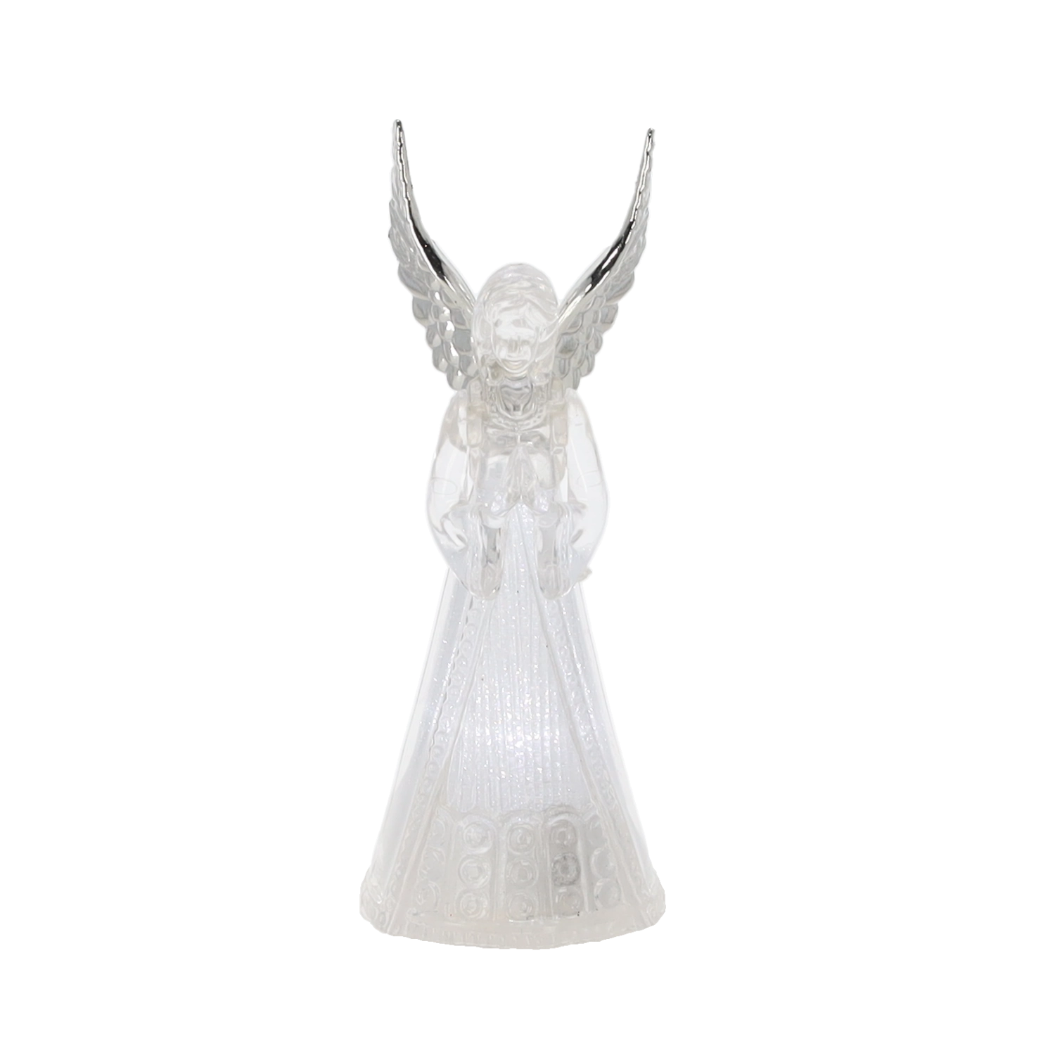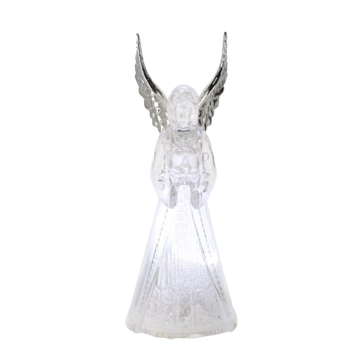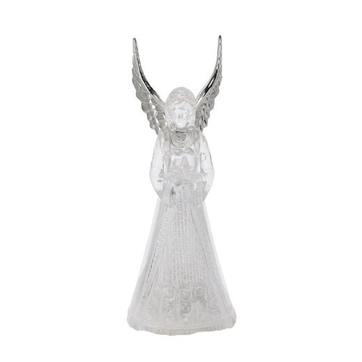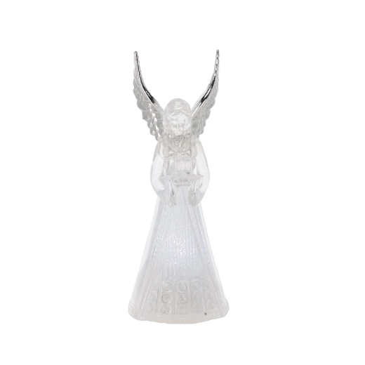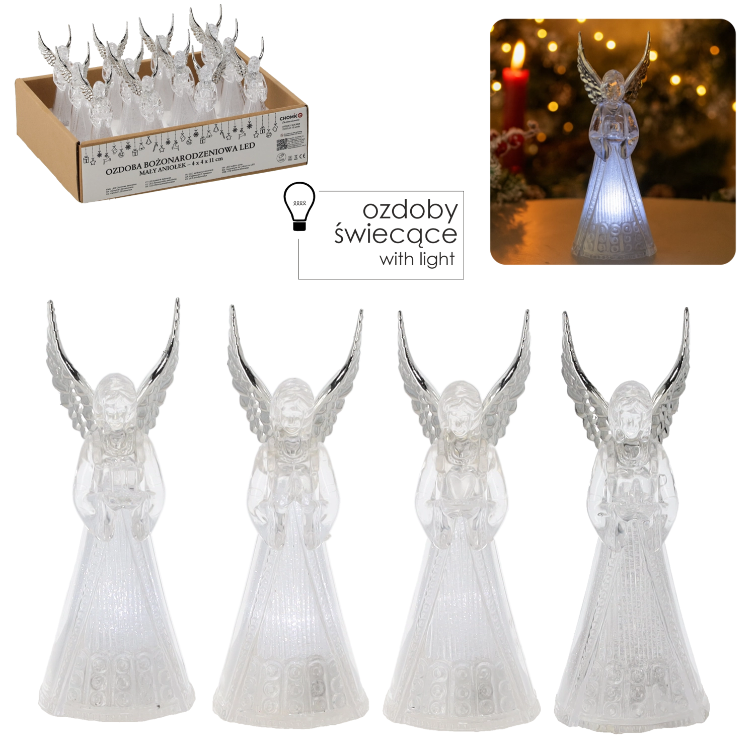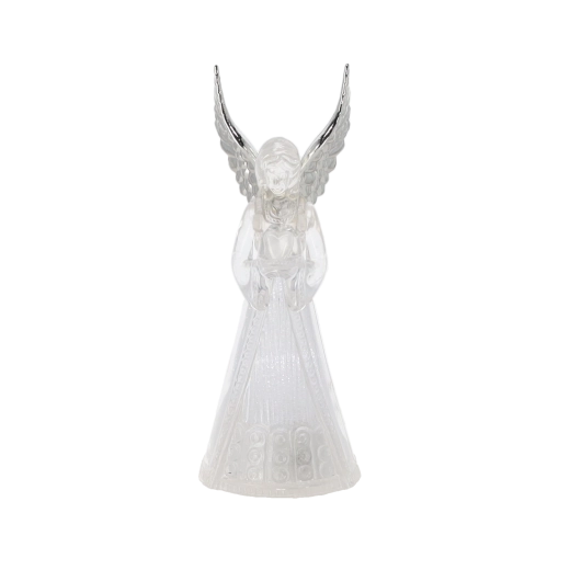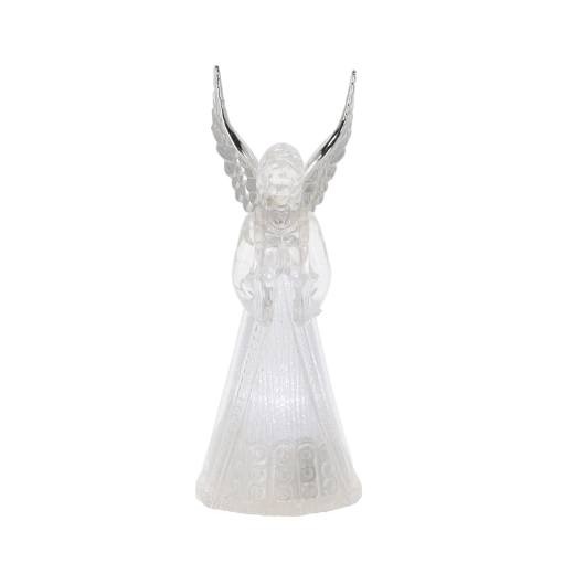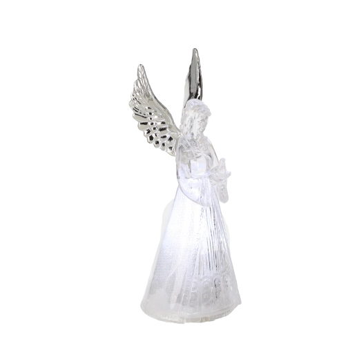 Półprzezroczyste ciało anioła rozprasza chłodno białe światło, tworząc spokojną, elegancką atmosferę idealną na Boże Narodzenie i wieczorne wyciszenie.