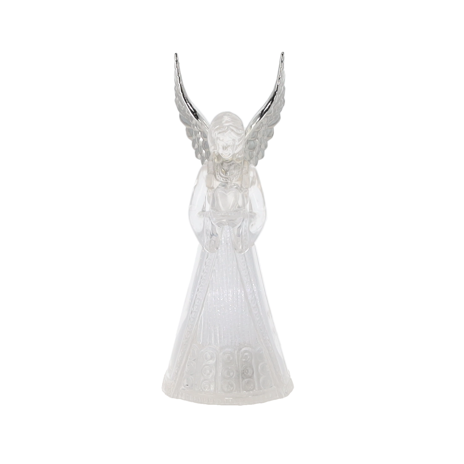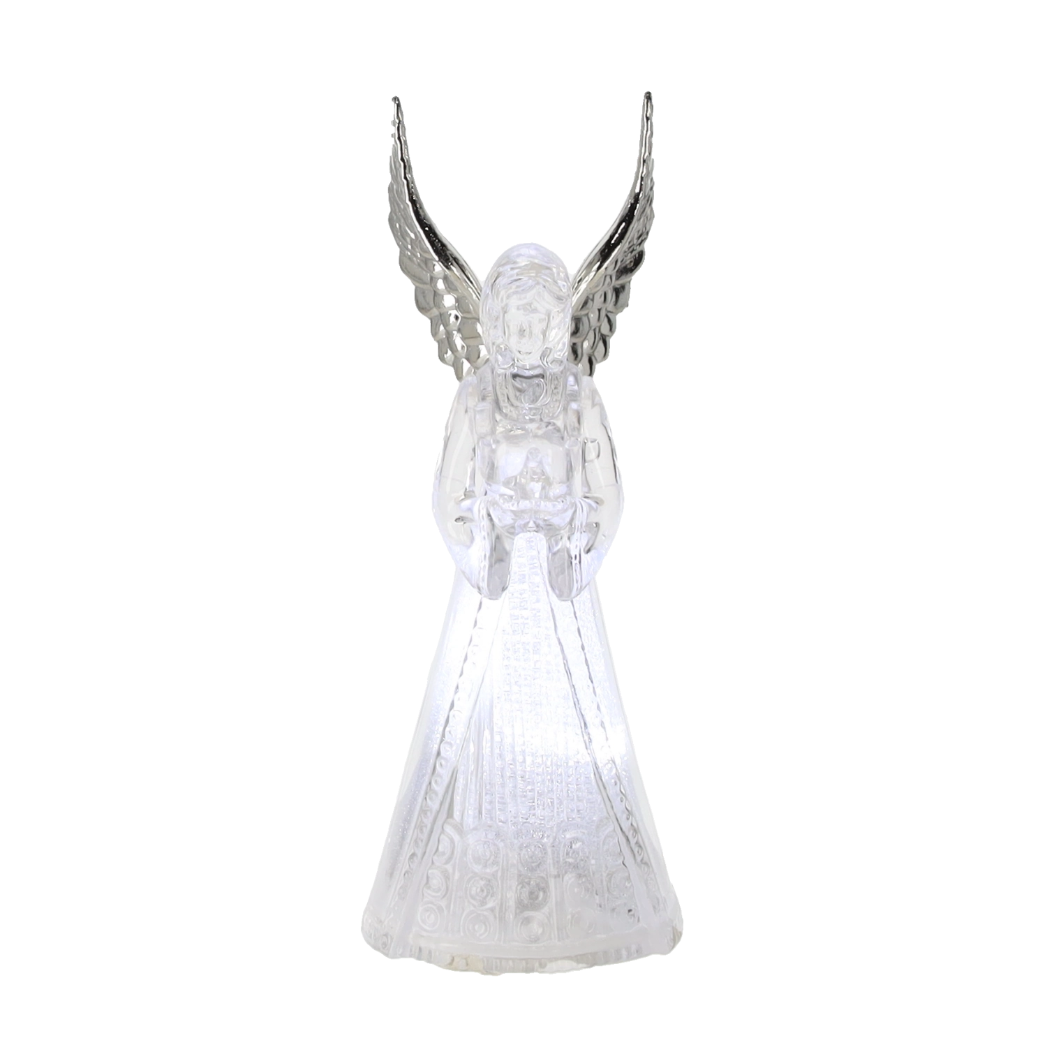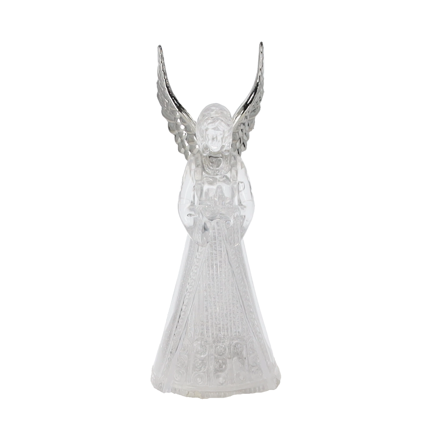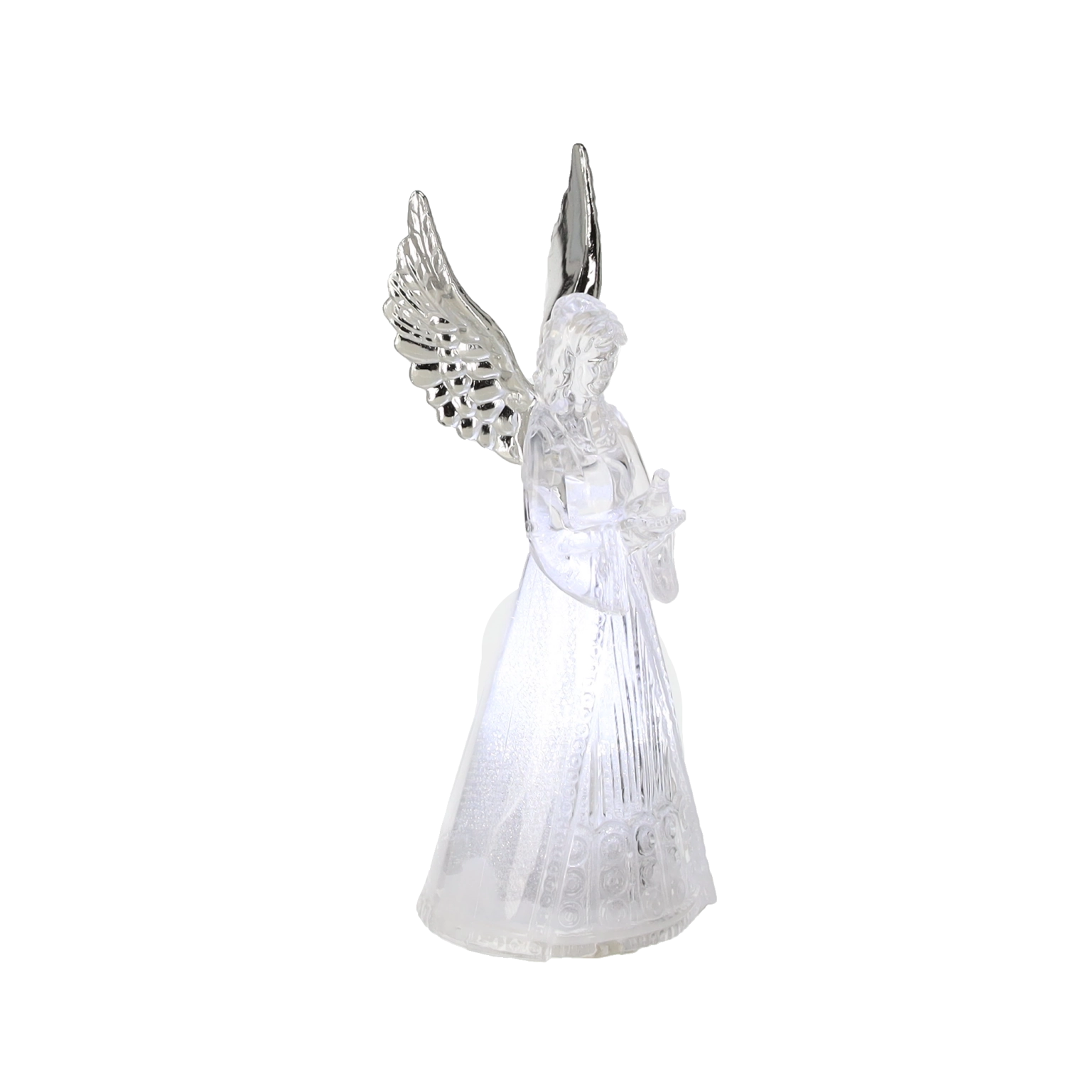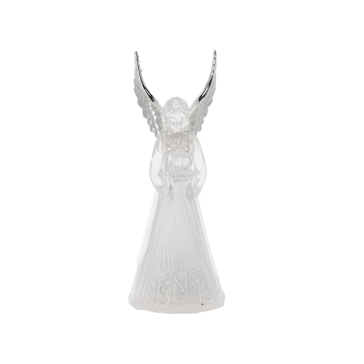 Półprzezroczyste ciało anioła rozprasza chłodno białe światło, tworząc spokojną, elegancką atmosferę idealną na Boże Narodzenie i wieczorne wyciszenie.