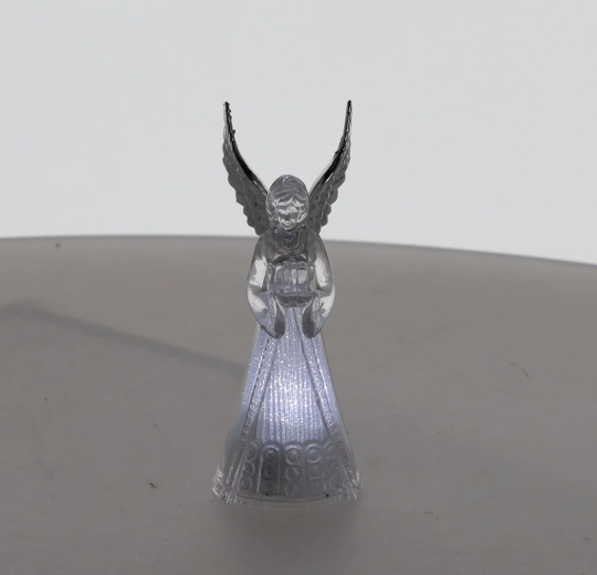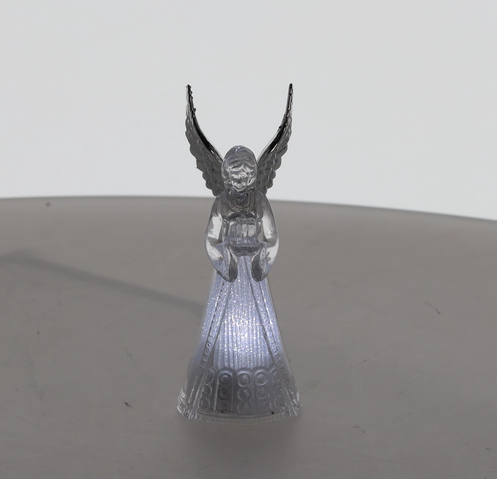 Subtelne reliefy skrzydeł i wzorów na szacie dodają figurce uroku i przy podświetleniu tworzą piękne świetlne refleksy.