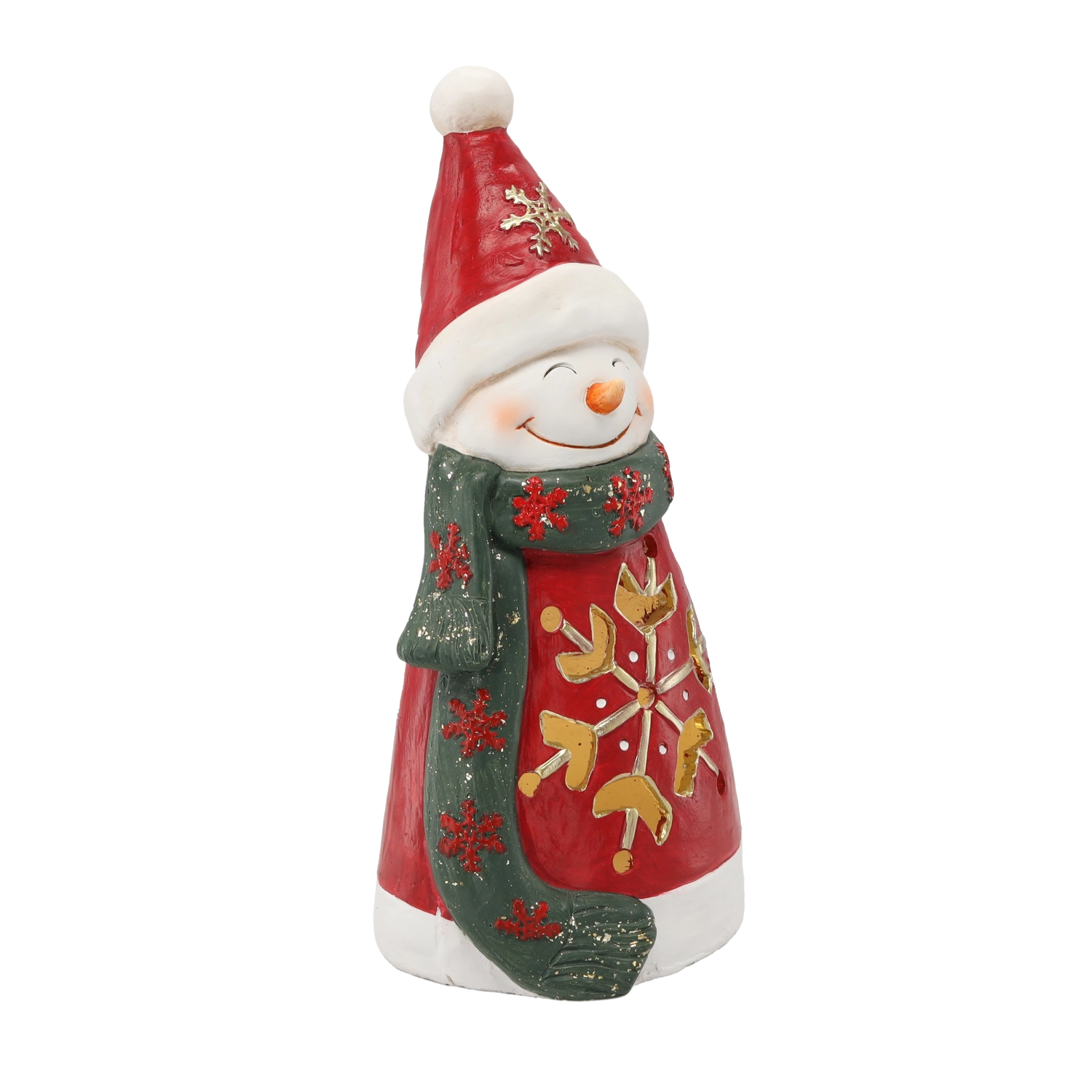 Ten stylowy bałwanek w czerwonym płaszczyku i czapce, z zielonym szalikiem i dekoracyjnym płatkiem, wprowadzi do wnętrza świąteczną magię. Zintegrowane światło LED subtelnie podświetla dekor, tworząc przytulną i ciepłą atmosferę.