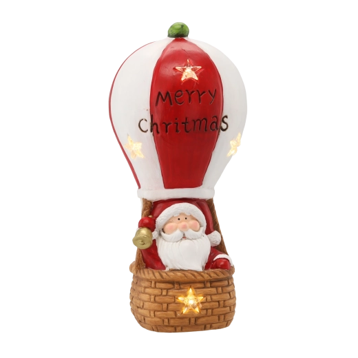 Mikołaj w balonie na gorące powietrze z napisem „Merry Christmas” to wyrazisty i figlarny akcent, który sprawdzi się na stole, półce i komodzie.