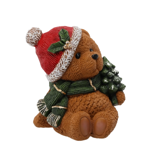 Urocza świąteczna figurka misia z choinką rozświetli Twój dom dzięki zintegrowanemu oświetleniu LED. Dekoracja z wytrzymałej magnezji o imponujących wymiarach 27 × 25 × 29 cm tworzy przytulną, świąteczną atmosferę i idealnie sprawdzi się na półce, komodzie czy pod choinką.