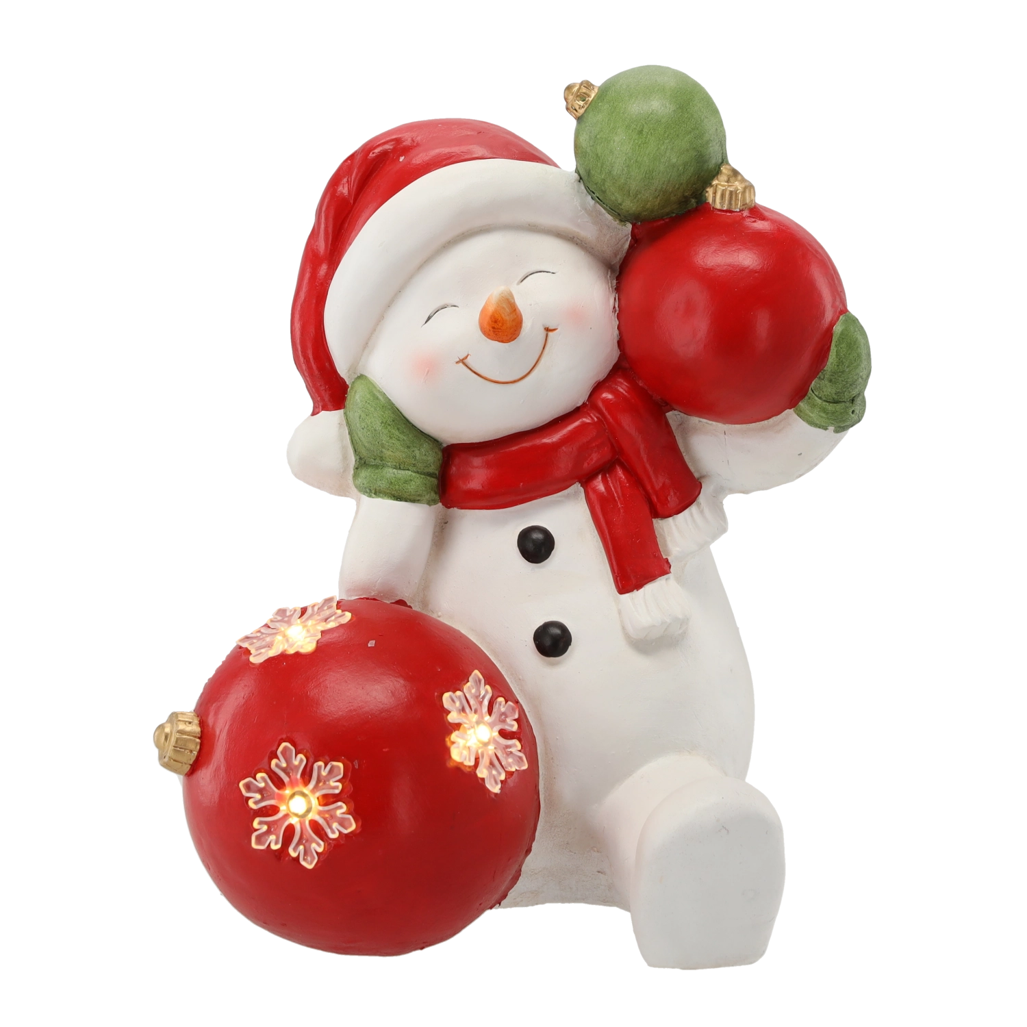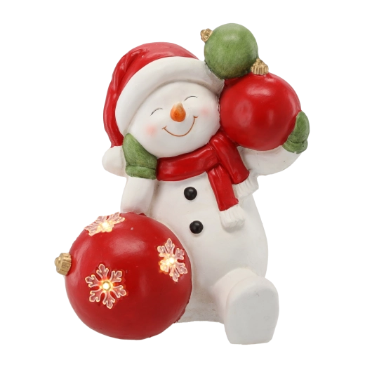 Ta szczegółowo wykonana świąteczna figurka bałwanka z bombkami wprowadza do wnętrza ciepłą, świąteczną atmosferę. Delikatne światło LED podkreśla dekor i tworzy przyjemne akcenty świetlne podczas długich zimowych wieczorów. Dzięki solidnemu materiałowi z magnezji dekoracja jest stabilna i trwała.