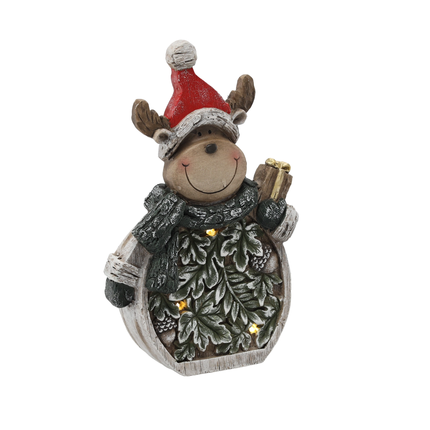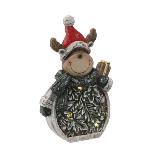 Elegancka świąteczna dekoracja w formie sercowatego jelenia z delikatnymi liśćmi i zintegrowanym oświetleniem LED rozświetli Twój dom przytulnym blaskiem. Wysokiej jakości mieszanka magnezji zapewnia dopracowane detale i stabilność. Idealna na komodę, parapet okienny lub świąteczny stół, zasilanie na 3× baterie AAA umożliwia łatwe ustawienie bez kabli.
