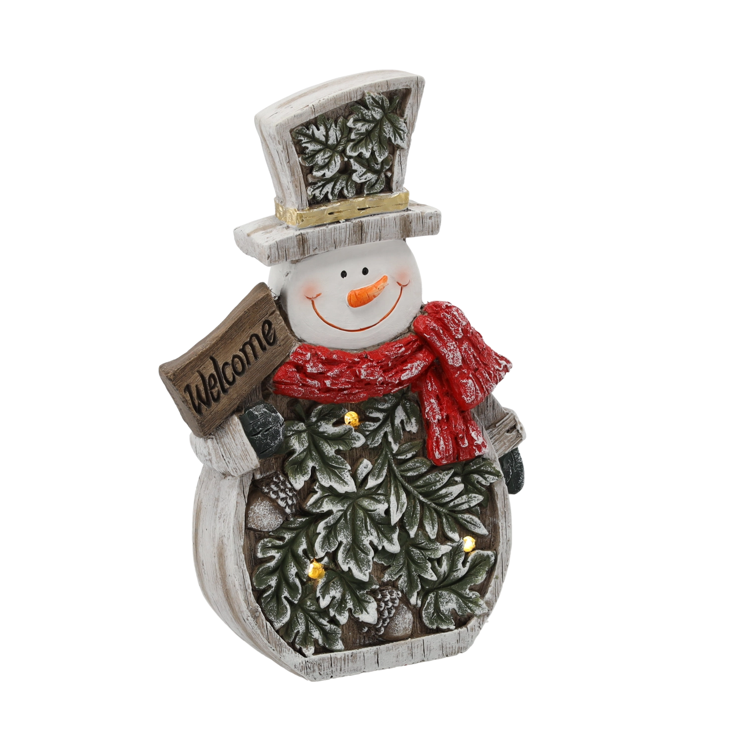 Rozjaśnij swój dom magiczną atmosferą dzięki tej świątecznej dekoracji – bałwankowi z listkami i zintegrowanym oświetleniem LED. Elegancki design i wysokiej jakości wykonanie z masy magnezjowej nadadzą wnętrzu świątecznego charakteru, a kompaktowe wymiary ułatwią ustawienie na półce, komodzie czy parapecie okiennym. Zasilanie na 3× baterie AAA zapewnia wygodne użytkowanie bez kabli.