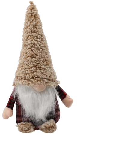 Ten stylowy skrzat to świetny dodatek do zimowych i świątecznych aranżacji. Beżowa, teksturowana czapka, długa biała broda i czerwono‑czarna kraciasta tułów tworzą ponadczasowy wygląd pasujący do nowoczesnych i tradycyjnych wnętrz. Dzięki stabilnemu wykonaniu łatwo usiądzie na równej powierzchni i pięknie zaprezentuje się na stoliku kawowym, półce czy wśród prezentów pod choinką.