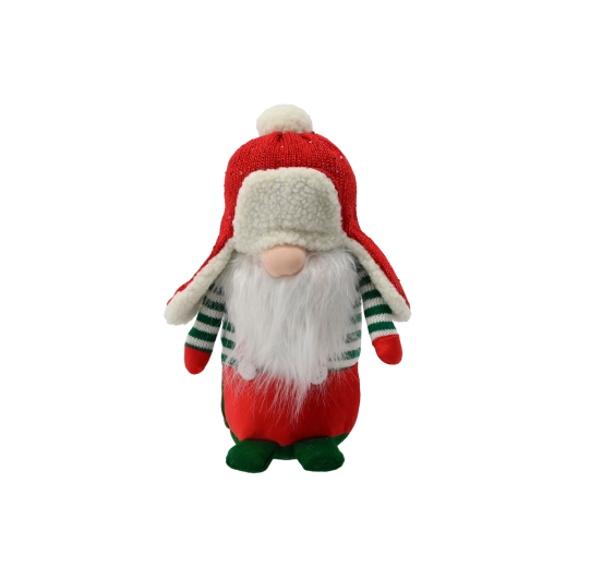 Ten dekoracyjny skrzat z długą białą brodą, czerwoną zimową czapką z nausznikami oraz prążkowanymi rękawami został zaprojektowany tak, aby stabilnie siedzieć i dodać wnętrzu ciepłego akcentu. Świetnie dopełni świąteczną aranżację salonu, przedpokoju czy pokoju dziecięcego.