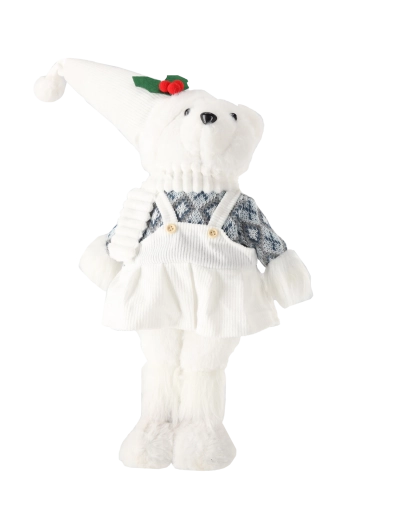Ten uroczy miś zachwyca miękkim wyglądem, zimowym strojem i zwisającymi nóżkami, dzięki czemu pięknie prezentuje się na półce lub kominku. Dzięki wysokości 50 cm stanie się wyrazistą ozdobą i ucieszy zarówno dzieci, jak i dorosłych.