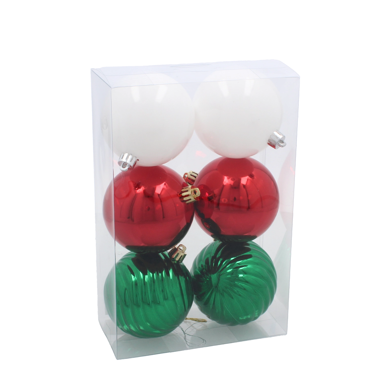 Zestaw bombek świątecznych 8 cm – czerwone, zielone i białe, 6 szt.