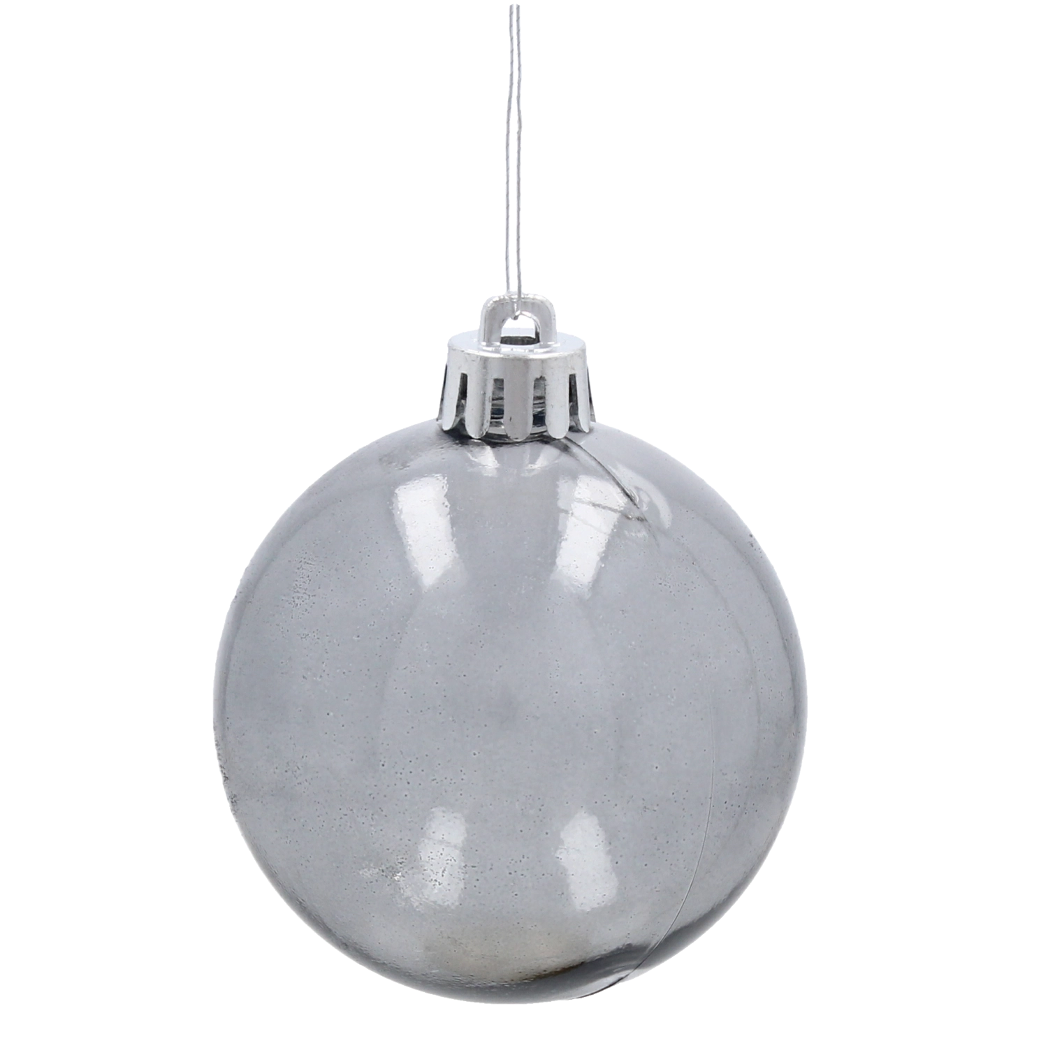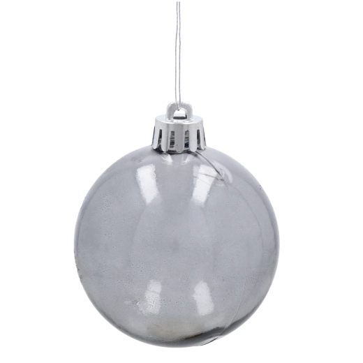 Błyszcząca srebrna bombka pięknie odbija światło, podkreśla świąteczną atmosferę i łatwo łączy się z innymi ozdobami.