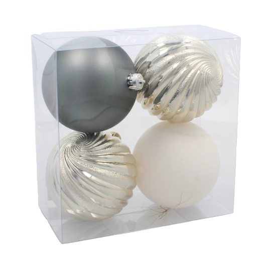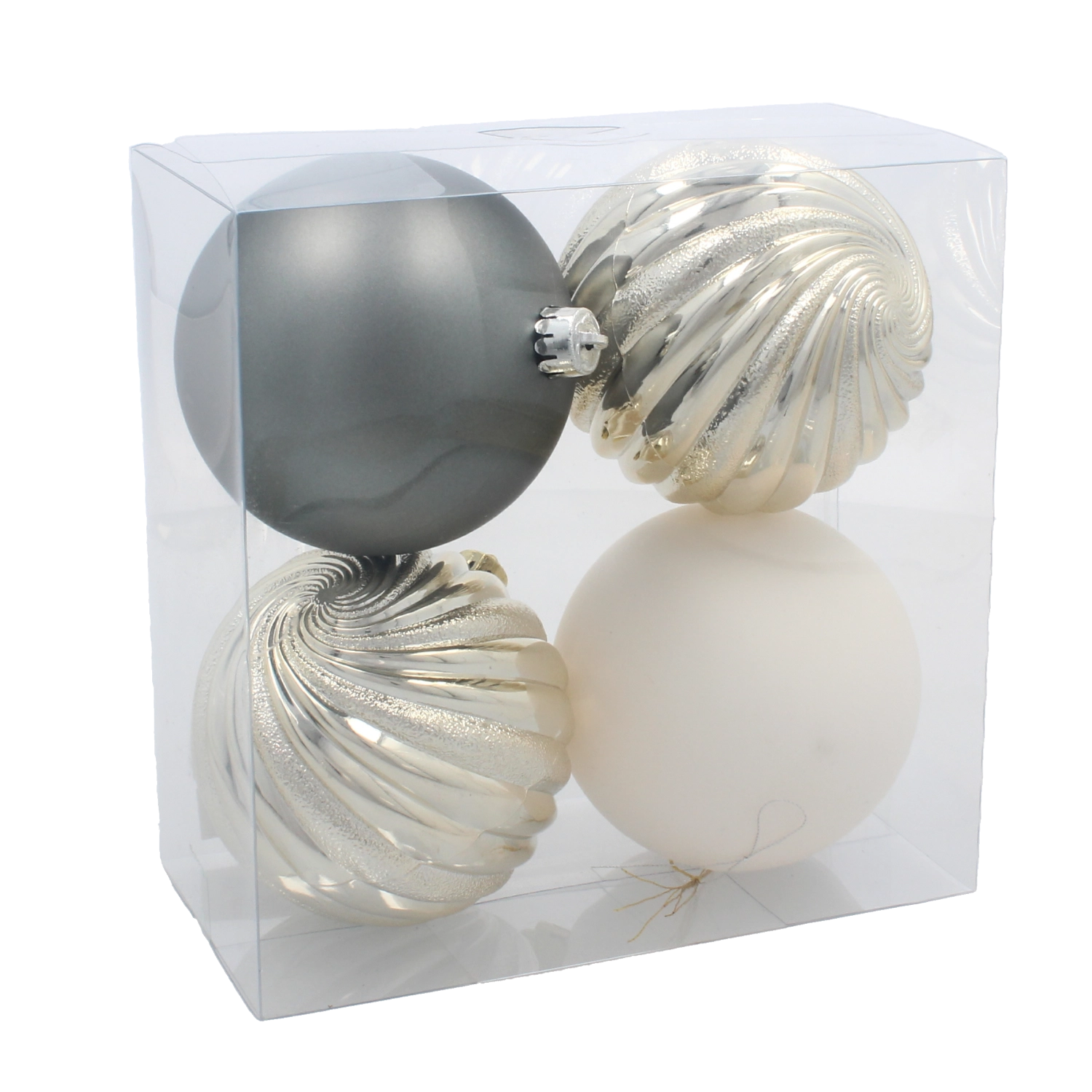 Zestaw bombek świątecznych 10 cm – szampańskie, szare i białe (4 szt.)