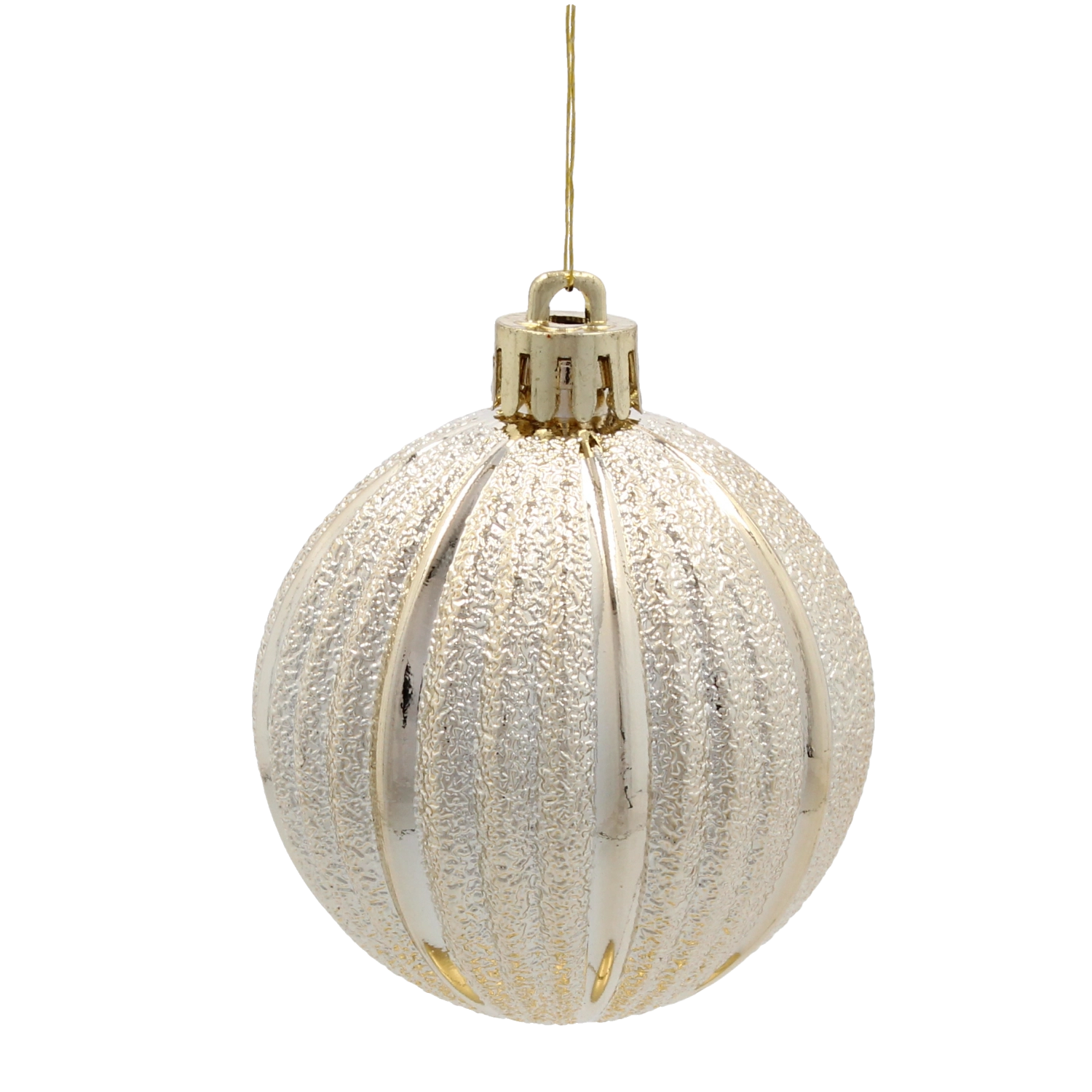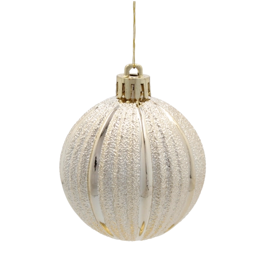 Ten stylowy zestaw bombek świątecznych ujednolica dekoracje w harmonijnych tonach szampana, szarości i bieli. Dzięki połączeniu błyszczących i matowych wykończeń ozdoby zyskują trójwymiarowość i pięknie odbijają światło. Idealne do nowoczesnego i klasycznego wystroju choinki, wieńców czy świątecznych aranżacji.