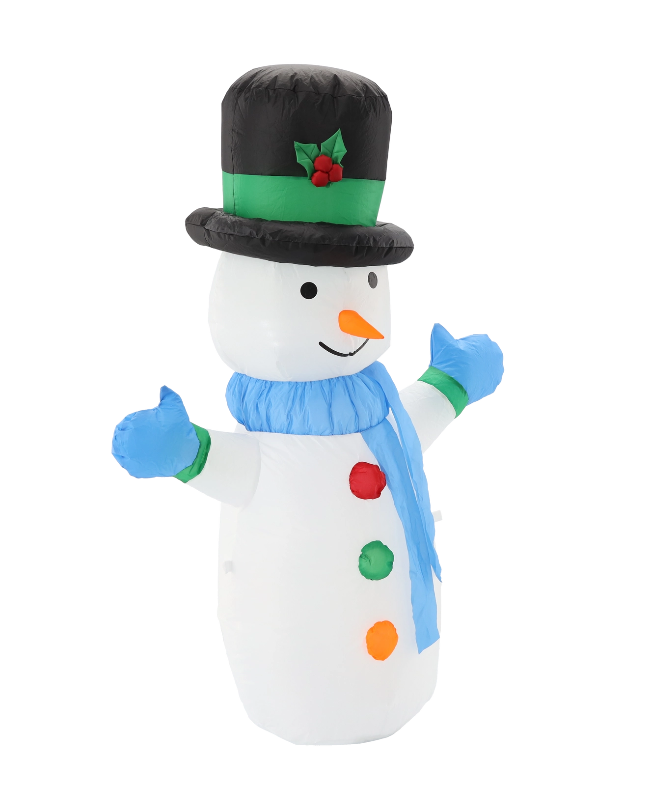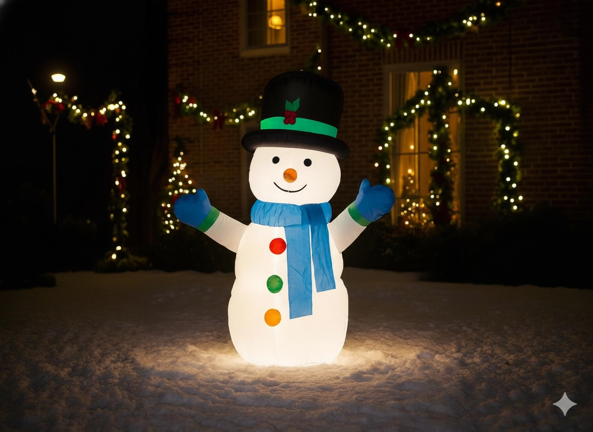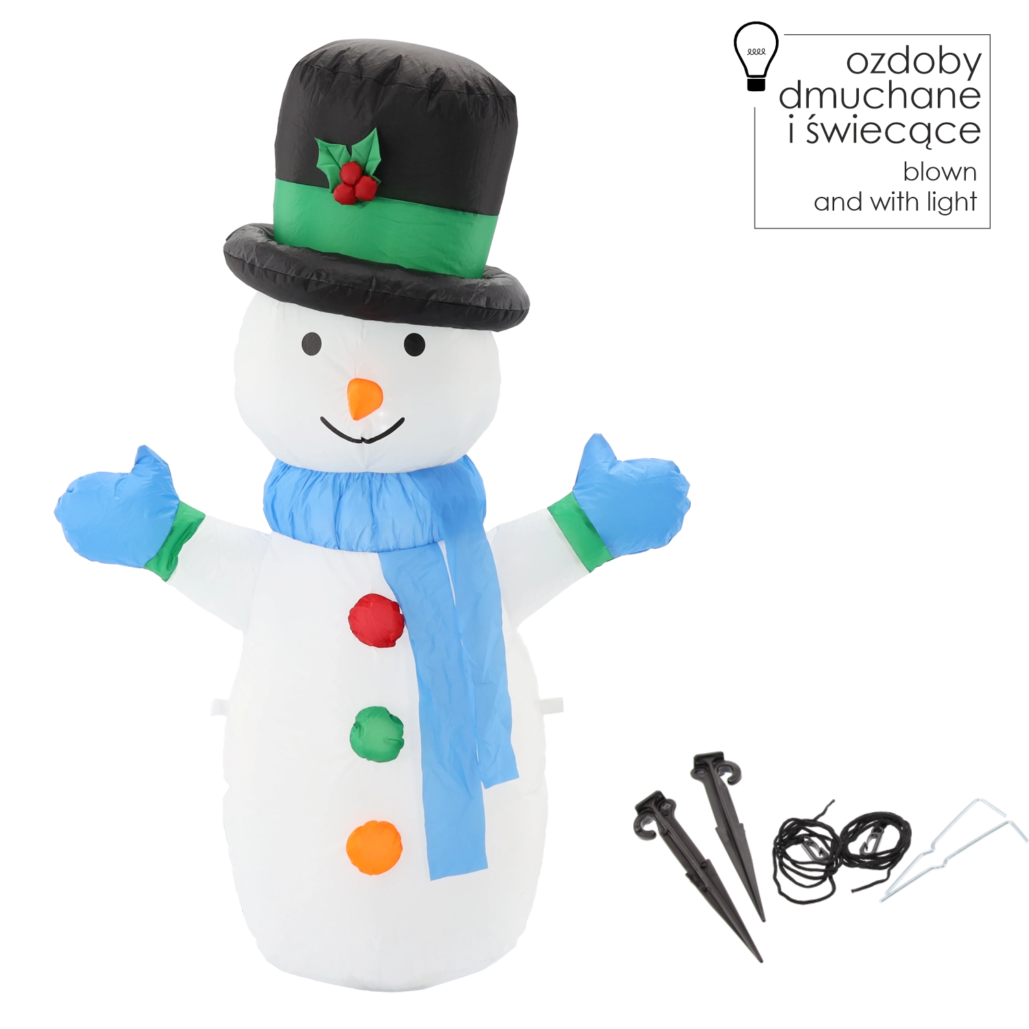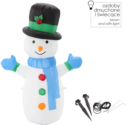 Ten kompaktowy, a jednocześnie wyrazisty świąteczny nadmuchiwany bałwan 120 cm odmieni balkon, ogród i wejście, tworząc przytulną zimową scenerię. Wystarczy wpiąć do gniazdka i w kilka chwil stoi gotowy, by szerzyć świąteczny nastrój dzięki wewnętrznemu światłu LED.