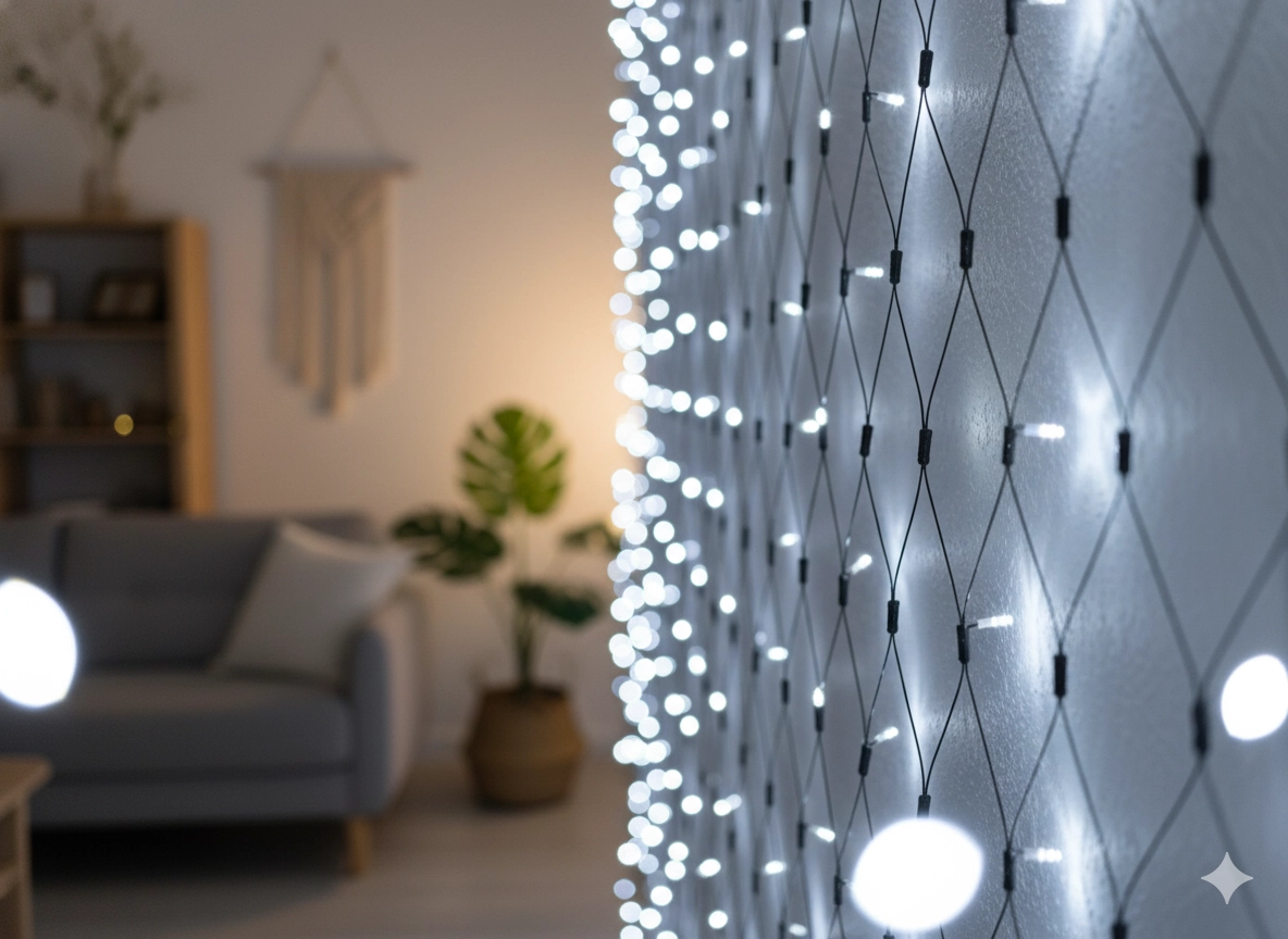 Konstrukcja siatkowa z gęstym rozmieszczeniem LED gwarantuje równomierne światło bez prześwitów – idealne na ściany, witryny i dekoracje okolicznościowe.