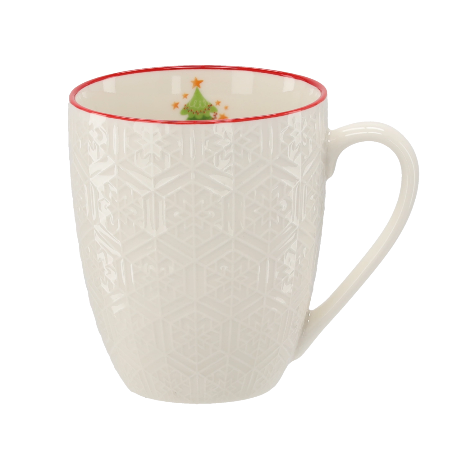 Kubek jest dostępny w miksie świątecznych motywów – od delikatnych wzorów po motyw choinki wewnątrz kubka. Doskonale sprawdzi się jako prezent świąteczny lub element świątecznego stołu.
