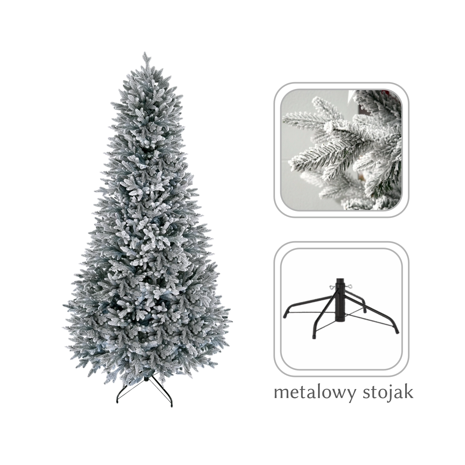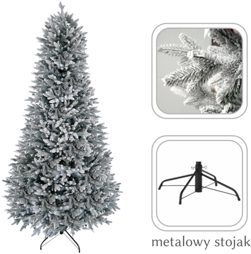 Choinkę składa się łatwo i szybko, jest trwała, nie wymaga wymagającej pielęgnacji, a dzięki wysokiej jakości materiałowi zachowuje kształt i kolor przez wiele sezonów. Zielone igliwie z białym „śniegiem” tworzy realistyczny efekt prawdziwego zimowego drzewka.