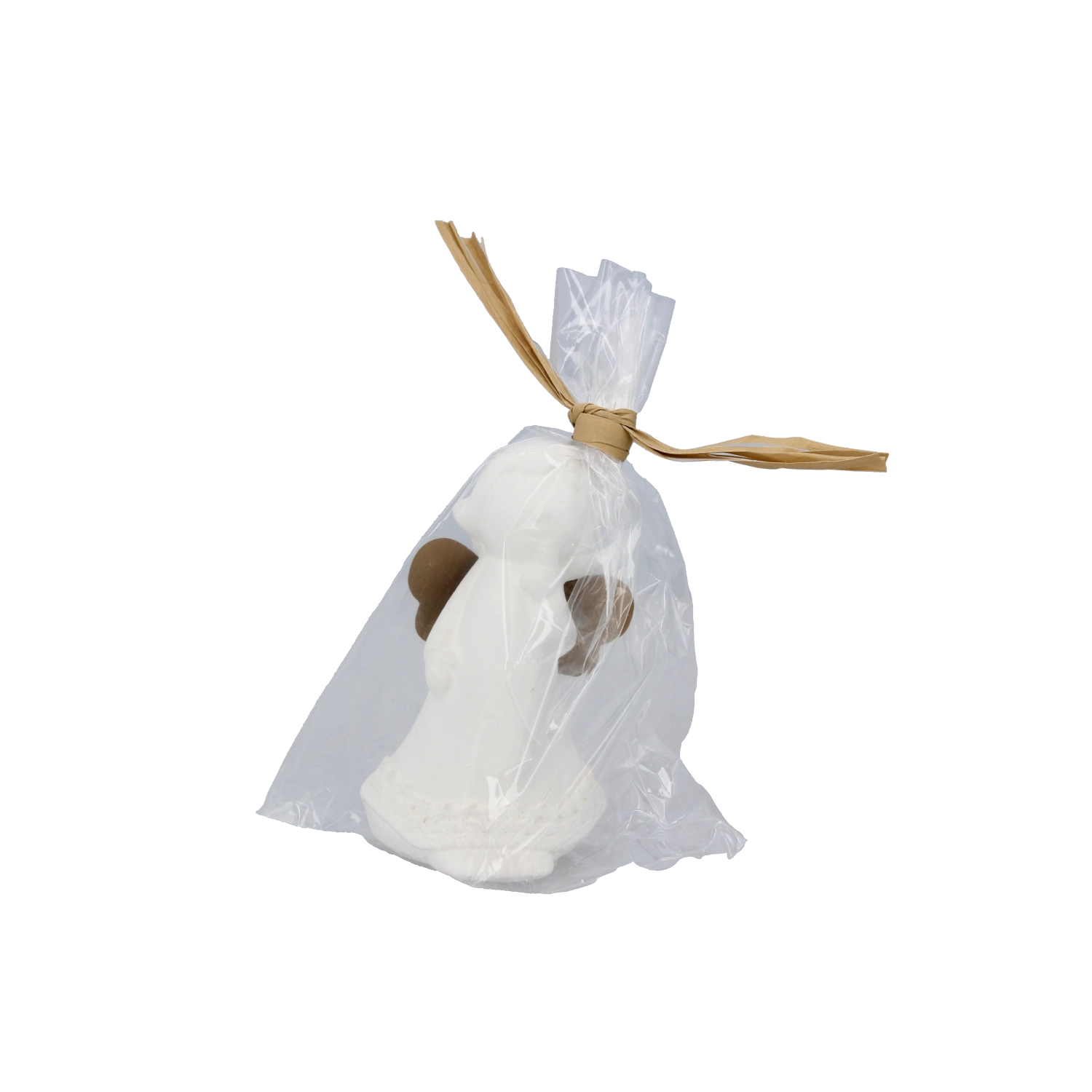 Stonowany aniołek z kwiatem wprowadza poczucie spokoju i przytulności, doskonale uzupełni dekoracje świąteczne i całoroczne.