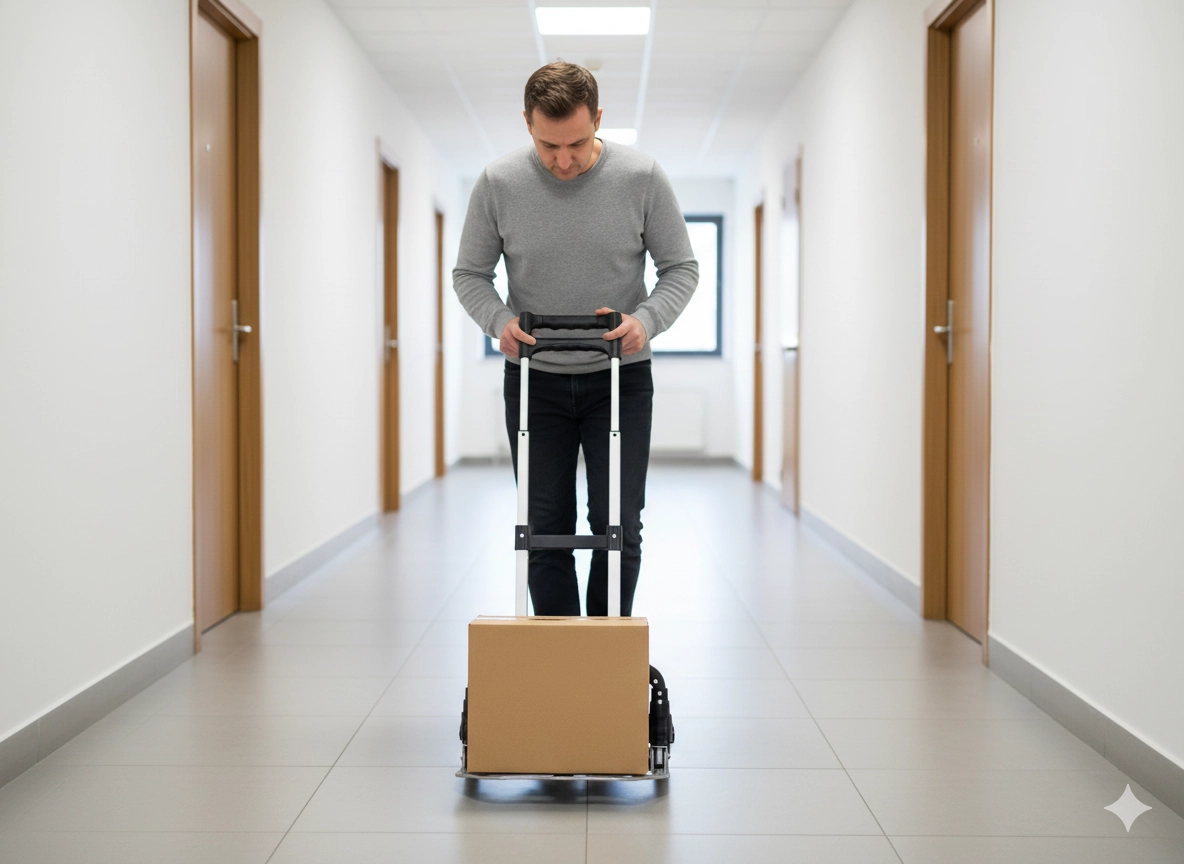 Dzięki kołom z PP + TPR jazda jest cicha i przyjazna dla podłóg, a jednocześnie sprawdza się przy dłuższych przewozach w magazynie, biurze i domu. Kompaktowe wymiary po złożeniu docenisz podczas przechowywania w szafie oraz przewożenia w samochodzie.