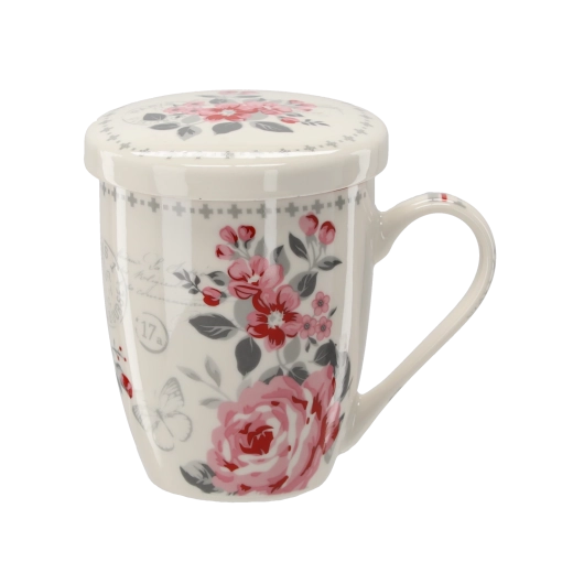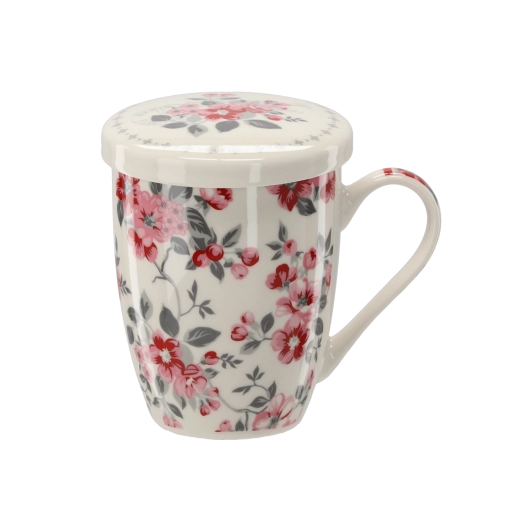 Kubek wykonany jest z wysokiej jakości porcelany i zdobi go kwiatowy dekor w nowoczesnym wydaniu. Dzięki pojemności 340 ml jest idealny do codziennego picia herbaty, naparów ziołowych i innych gorących napojów. Świetny pomysł na stylowy prezent dla miłośników herbaty.
