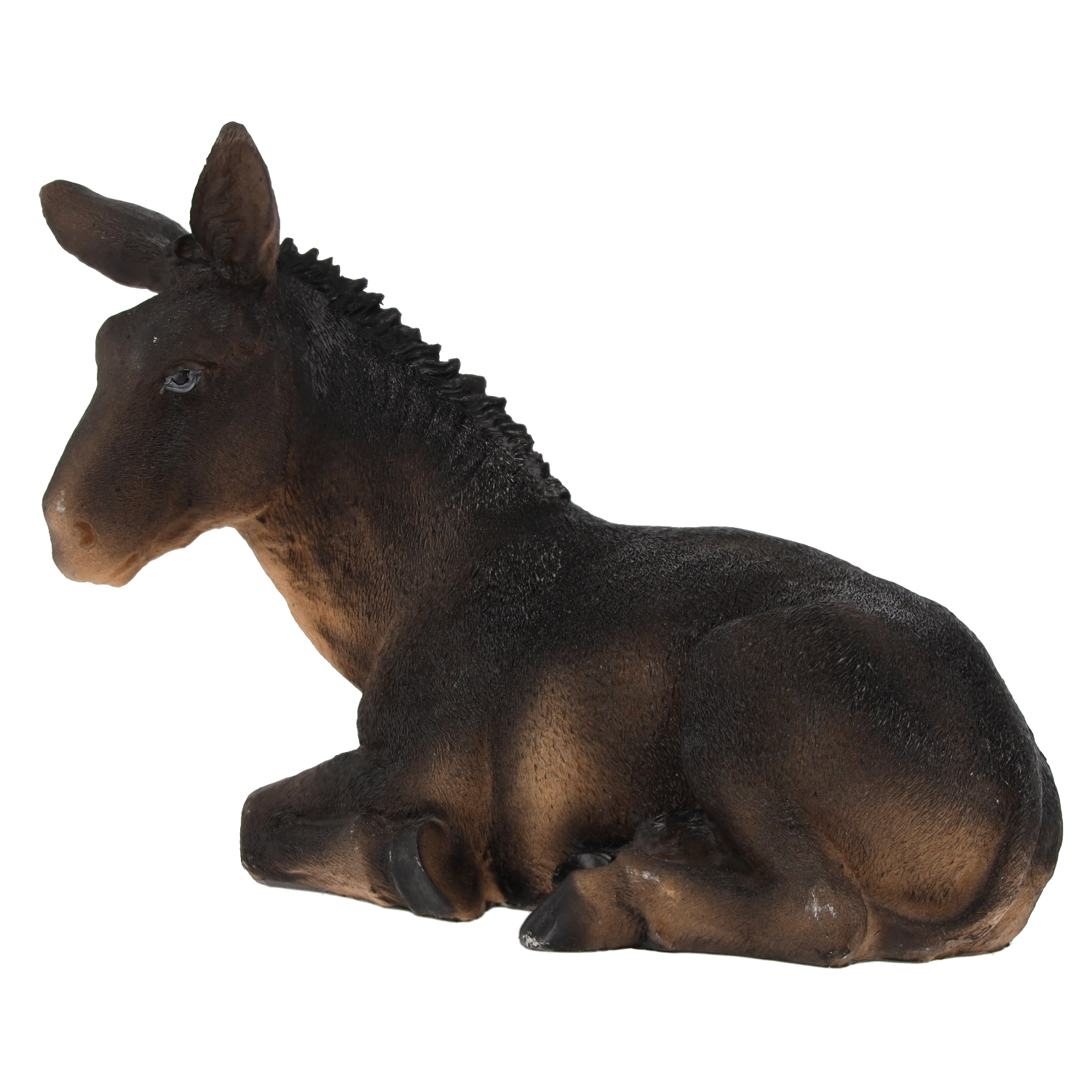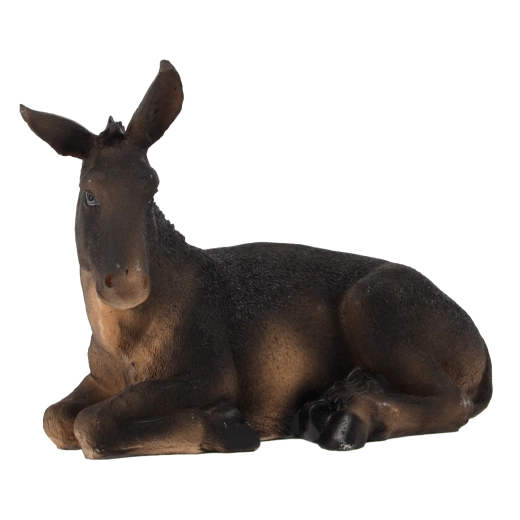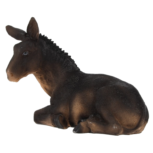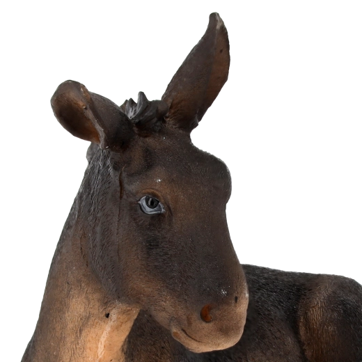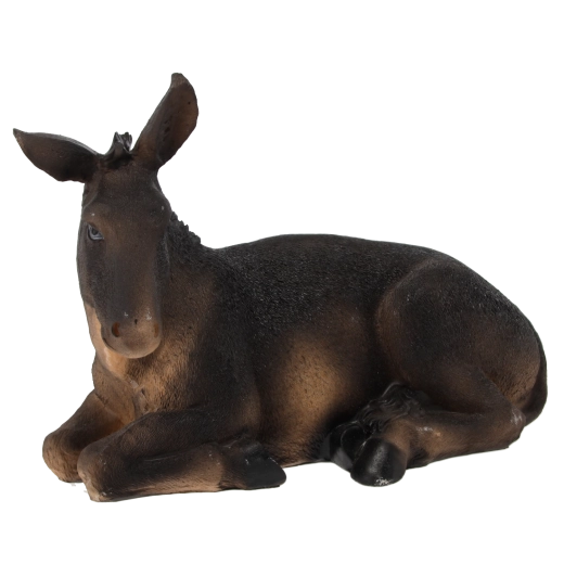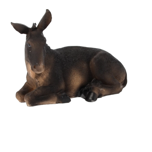 Realistyczna figurka leżącego osiołka z wytrzymałego poliresingu doda Twojej szopce autentycznej atmosfery. Wyróżnia się delikatnie modelowanymi detalami, naturalną kolorystyką oraz odpornością na warunki pogodowe – idealna do bożonarodzeniowych szopek w domu i w kościele.