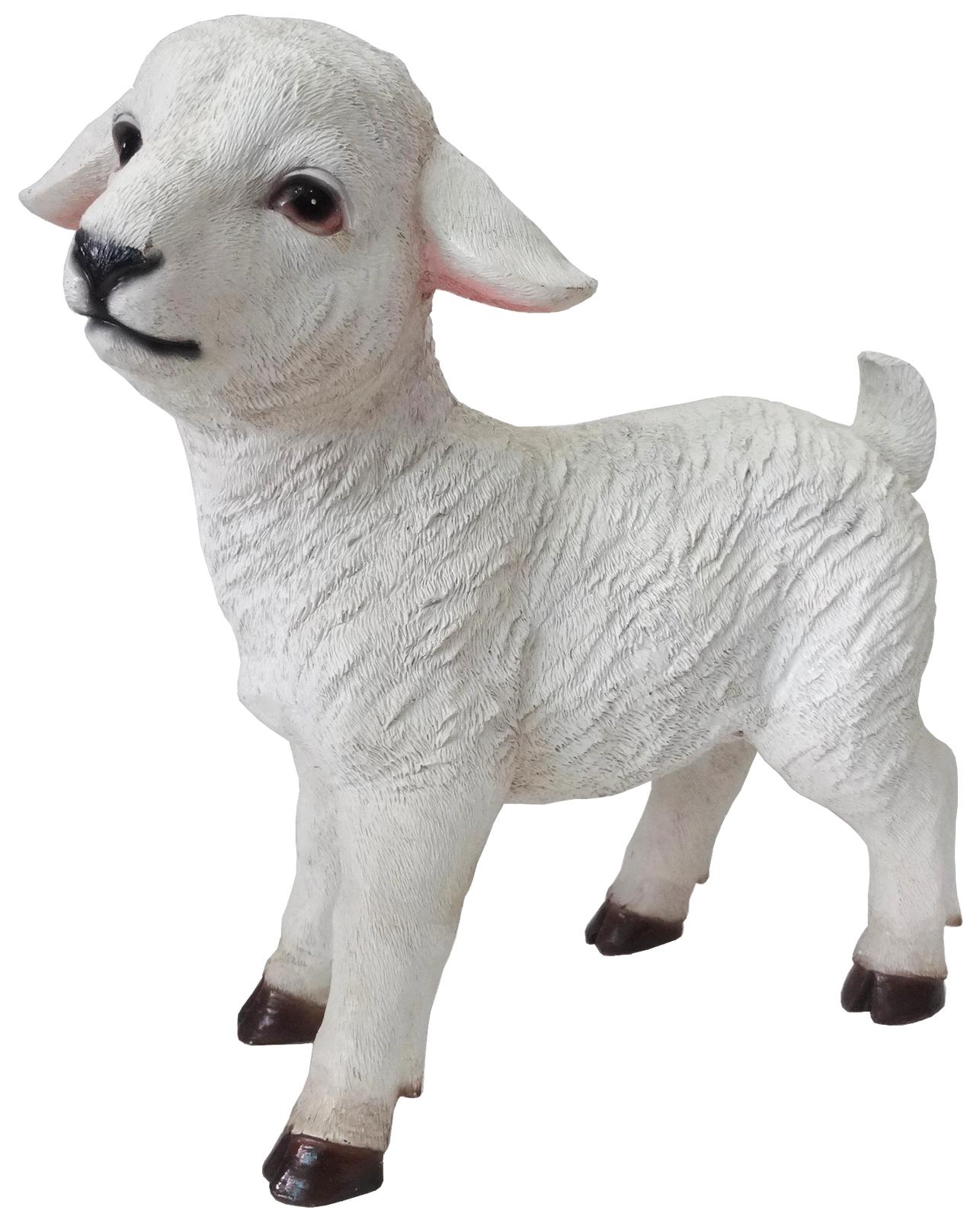 Samodzielnie stojąca owieczka z mocnymi nogami dobrze trzyma się na równej powierzchni i nadaje się do długotrwałej ekspozycji we wnętrzach.