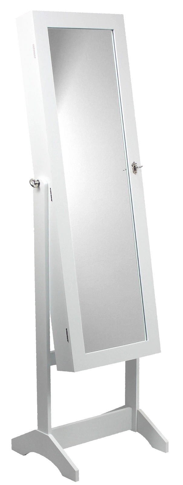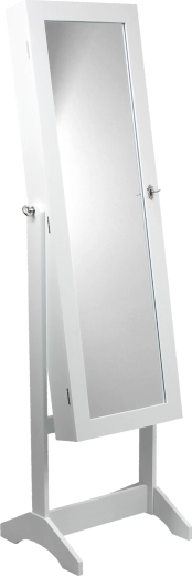 Odkryj praktyczne połączenie przestrzeni do przechowywania biżuterii i pełnowymiarowego stojącego lustra. Biała szkatułka GRAND oferuje przemyślany podział — haczyki na naszyjniki, listwy na kolczyki, przegródki na pierścionki, zegarki i drobne akcesoria kosmetyczne. Miękka pluszowa wyściółka chroni biżuterię przed zarysowaniami, a zamykanie na kluczyk zapewnia prywatność i bezpieczeństwo.