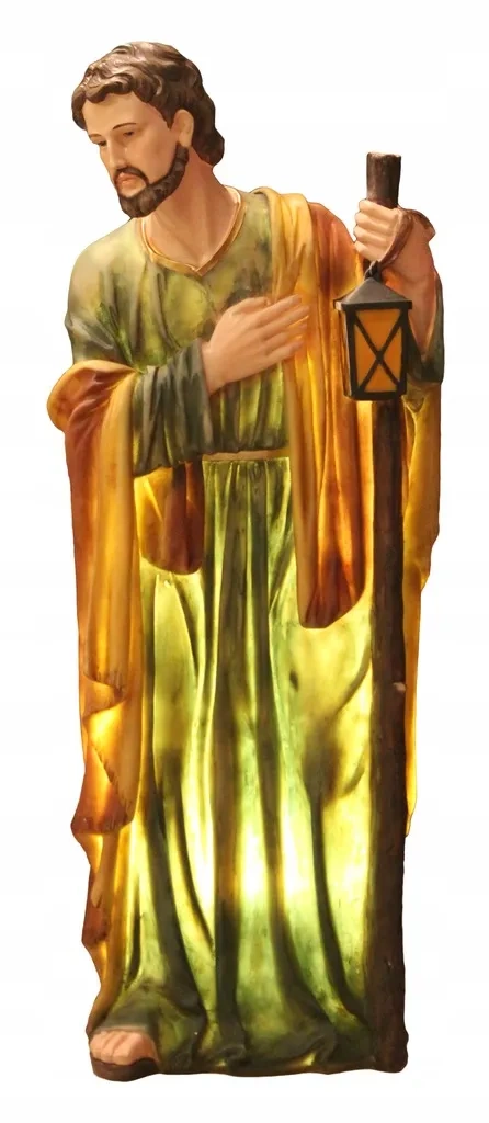 Ten elegancki zestaw obejmuje Matkę Bożą, św. Józefa z latarnią oraz Dzieciątko Jezus w żłóbku. Zintegrowane oświetlenie nadaje figurom miękki, odświętny blask, który podkreśla doskonale wymodelowane rysy i faktury szat. Idealny do świątecznej aranżacji domu, kościołów, kaplic, hotelowych lobby czy instytucji kultury.