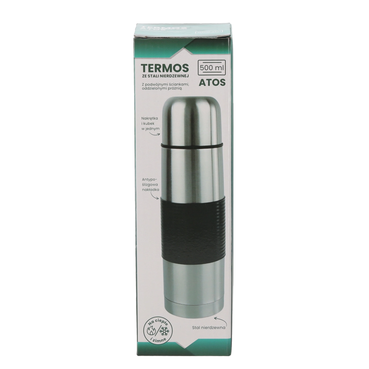 Utrzymuj swój ulubiony napój w odpowiedniej temperaturze przez cały dzień. Termos Atos o pojemności 500 ml wykorzystuje podwójne ścianki ze stali nierdzewnej, które gwarantują świetne właściwości termoizolacyjne i długotrwałą wydajność.