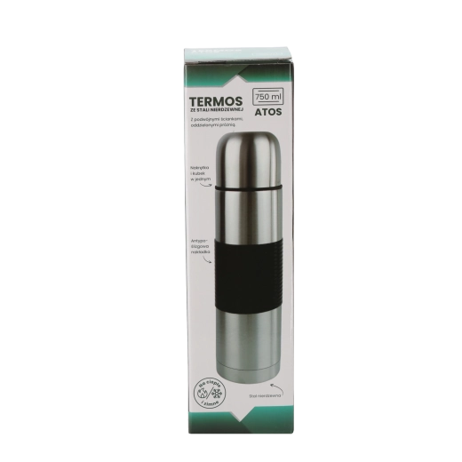 Odkryj niezawodny termos ATOS 750 ml na co dzień – do pracy, w podróży i na outdoor. Dzięki podwójnej ściance ze stali nierdzewnej oferuje doskonałe właściwości izolacyjne oraz odporność na uderzenia i korozję. Silikonowy, antypoślizgowy uchwyt zapewnia bezpieczne trzymanie w dłoni.