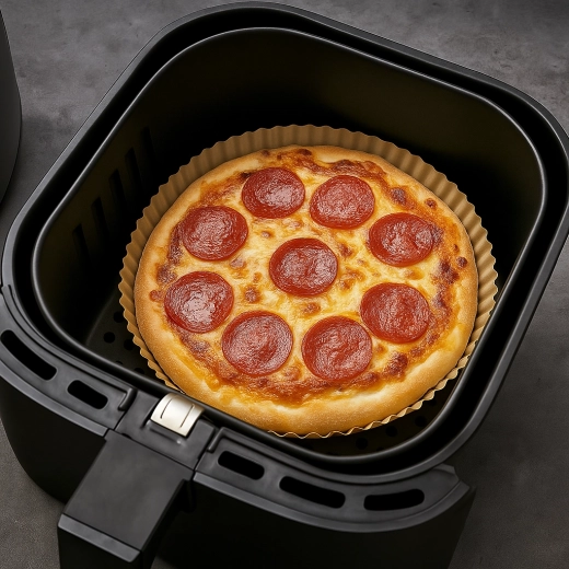Wkładki są uniwersalne: doskonale sprawdzają się we frytkownicy beztłuszczowej, ale wykorzystasz je także w kuchence mikrofalowej, parowarze lub na patelni. Materiał jest bezpieczny do kontaktu z żywnością (certyfikaty FDA, LFGB, FSC) i wytrzymuje temperatury do 220 °C. Dla prawidłowego użytkowania zawsze wkładaj wkładkę razem z jedzeniem i nigdy nie wystawiaj jej na otwarty ogień.