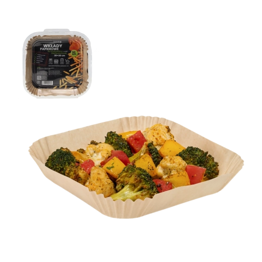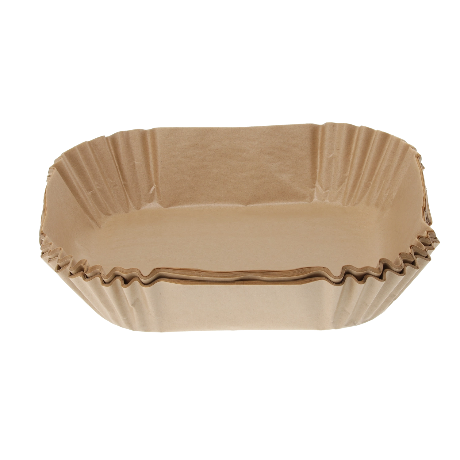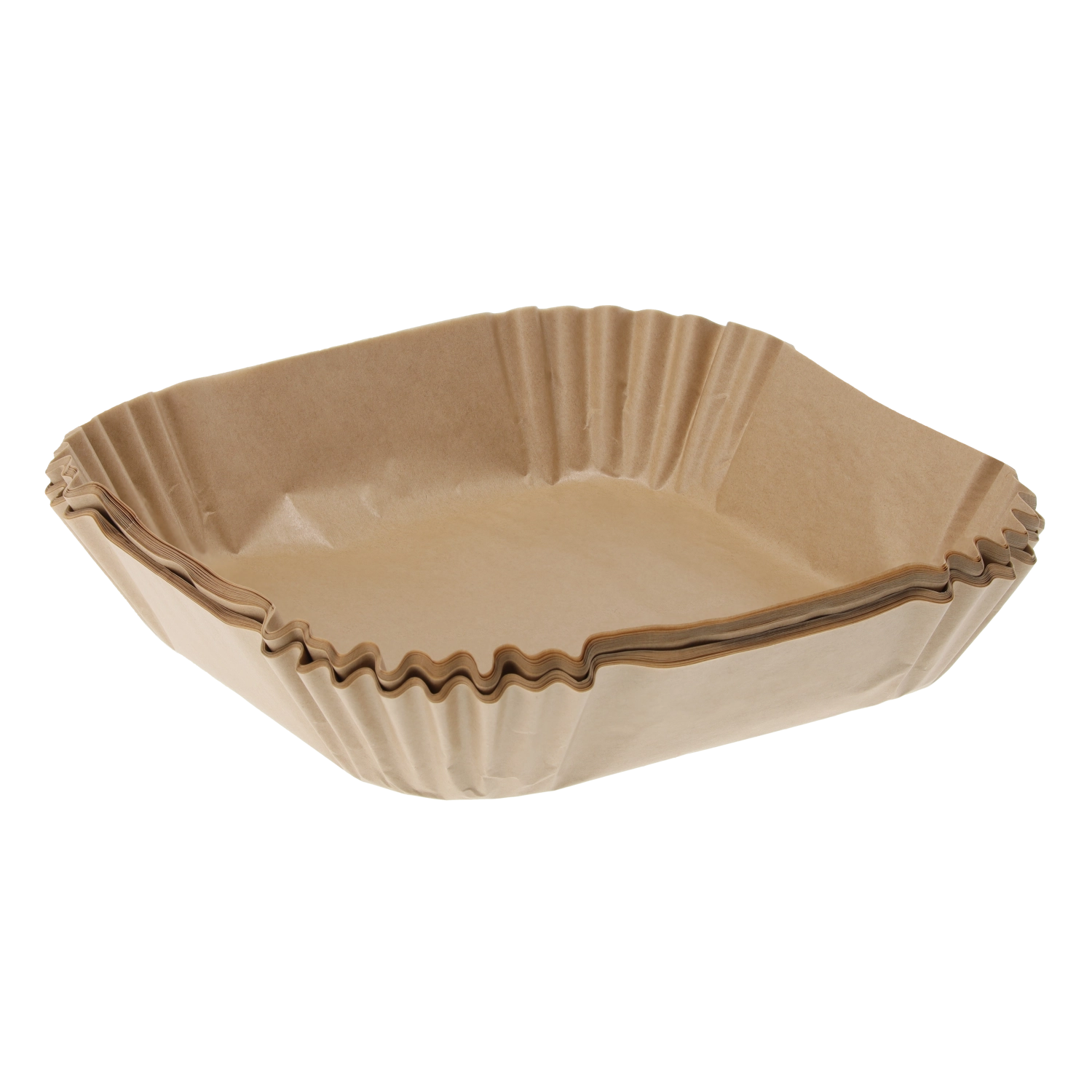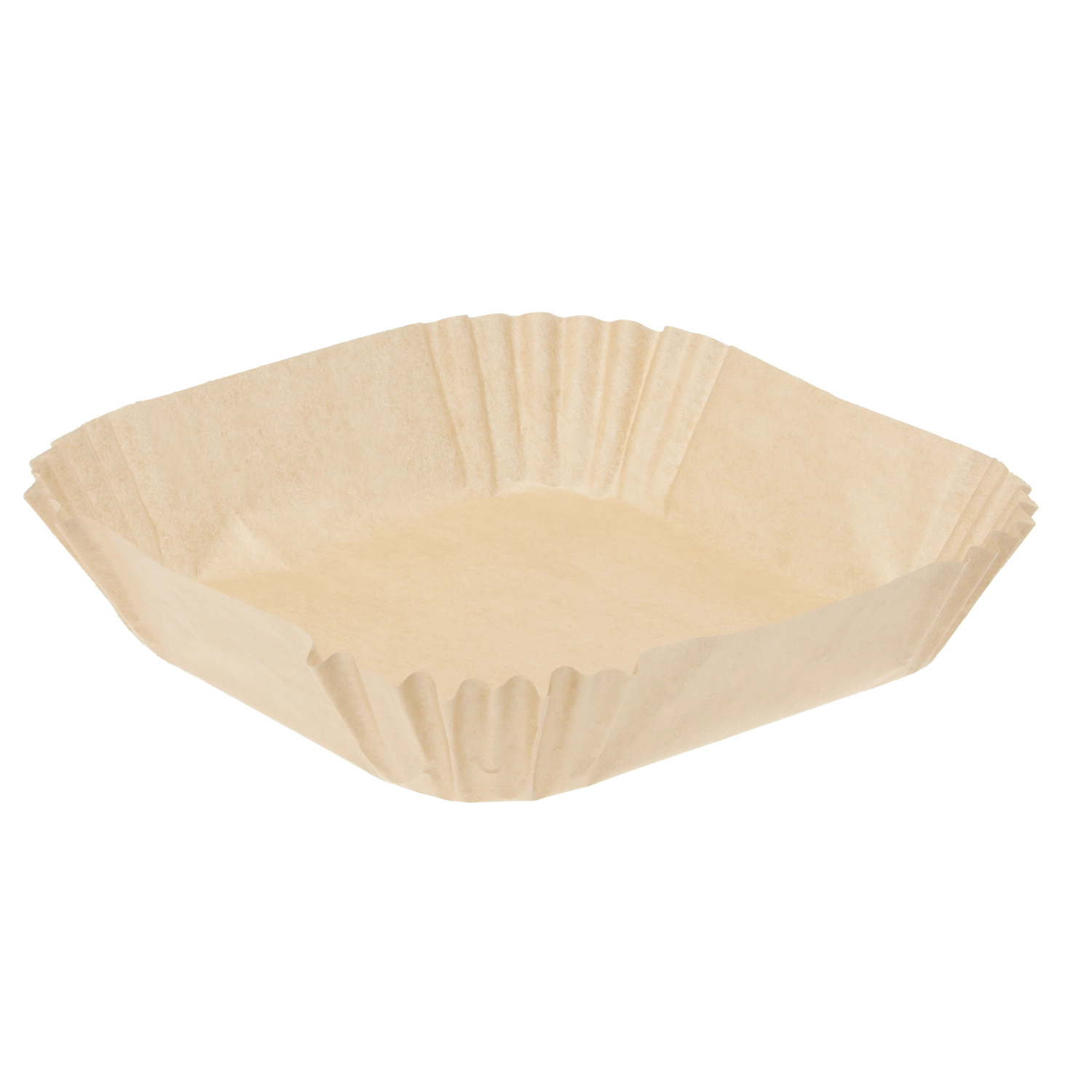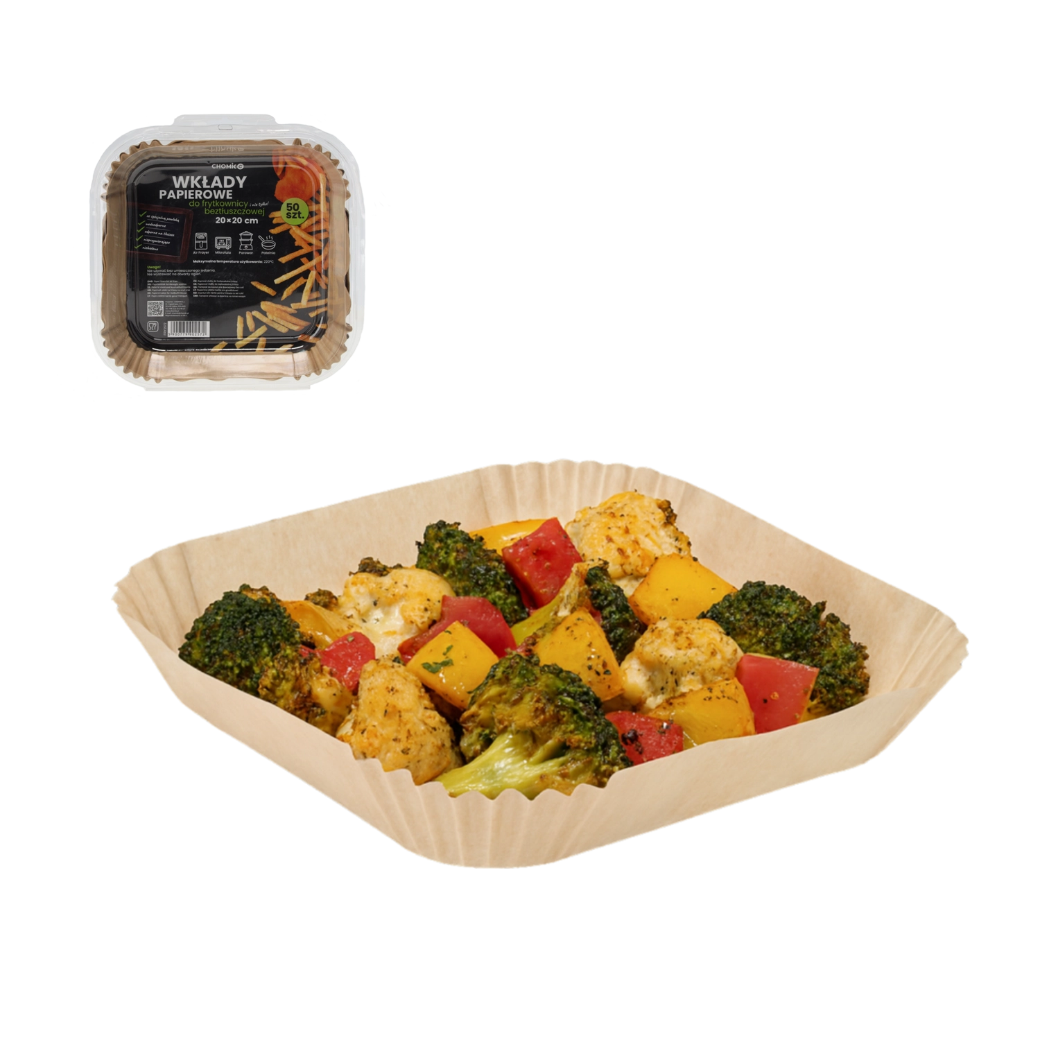 Kwadratowe papierowe wkładki o wymiarach 16 × 4,5 cm ułatwiają gotowanie i sprzątanie. Dzięki specjalnej obróbce powierzchni są nieprzywierające i odporne na przesiąkanie, więc zatrzymują tłuszcz i soki, chroniąc kosz frytkownicy przed przypiekaniem.