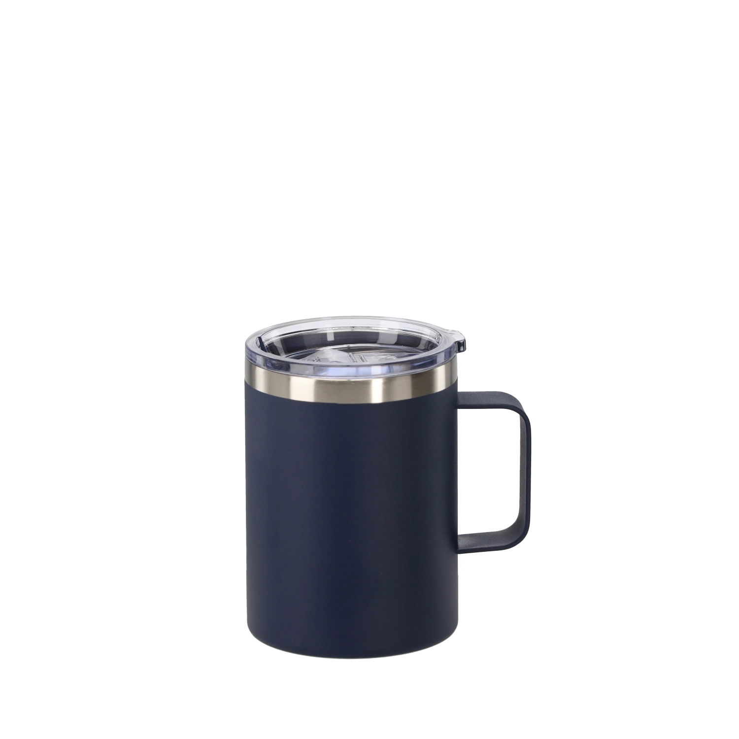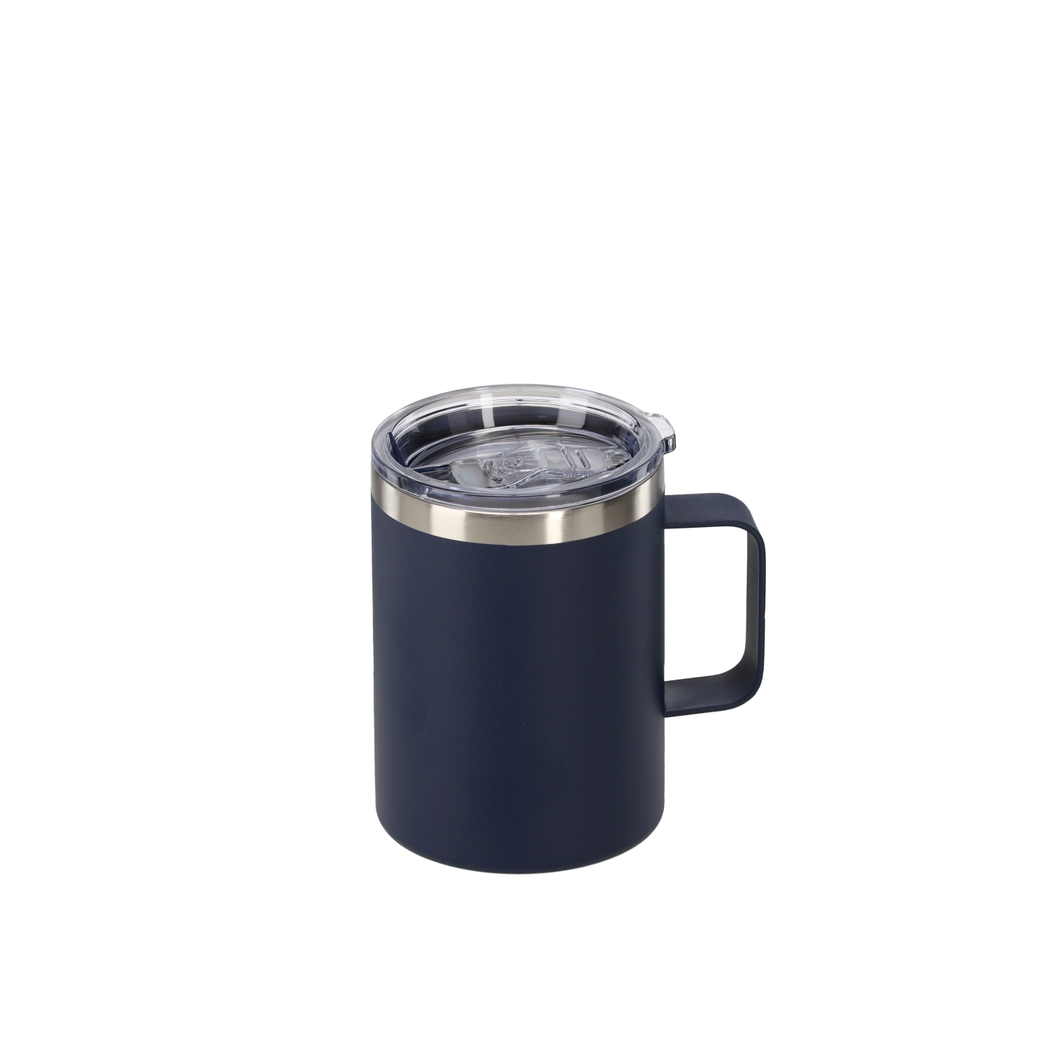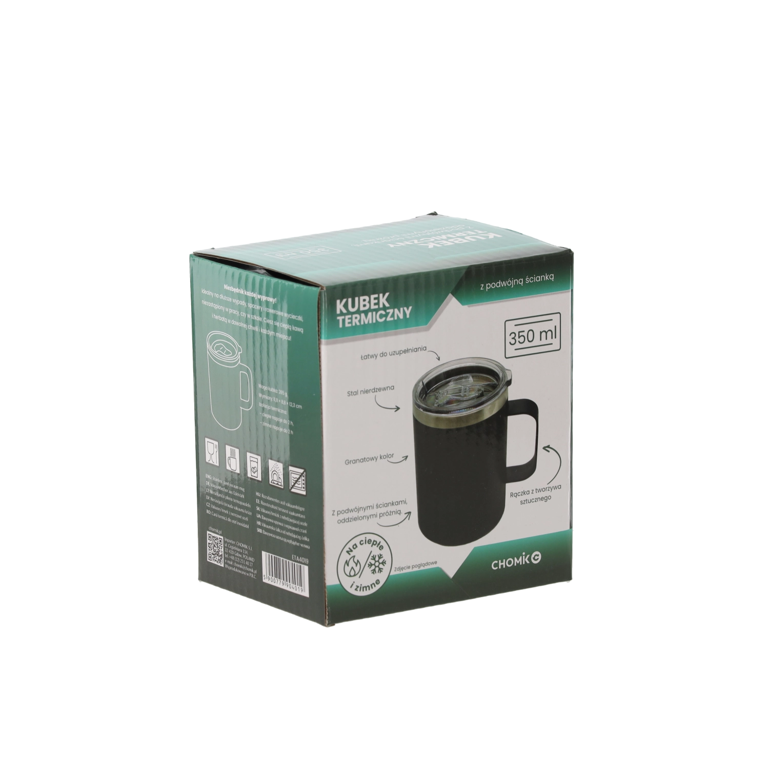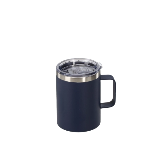 Powierzchnia proszkowa w granatowym kolorze zwiększa odporność na zarysowania i zapewnia pewny chwyt. Wieczko bez gwintu umożliwia szybkie picie i dolewanie, a przezroczysta konstrukcja ułatwia kontrolę zawartości. Kubek można myć w zmywarce, co maksymalnie upraszcza pielęgnację.