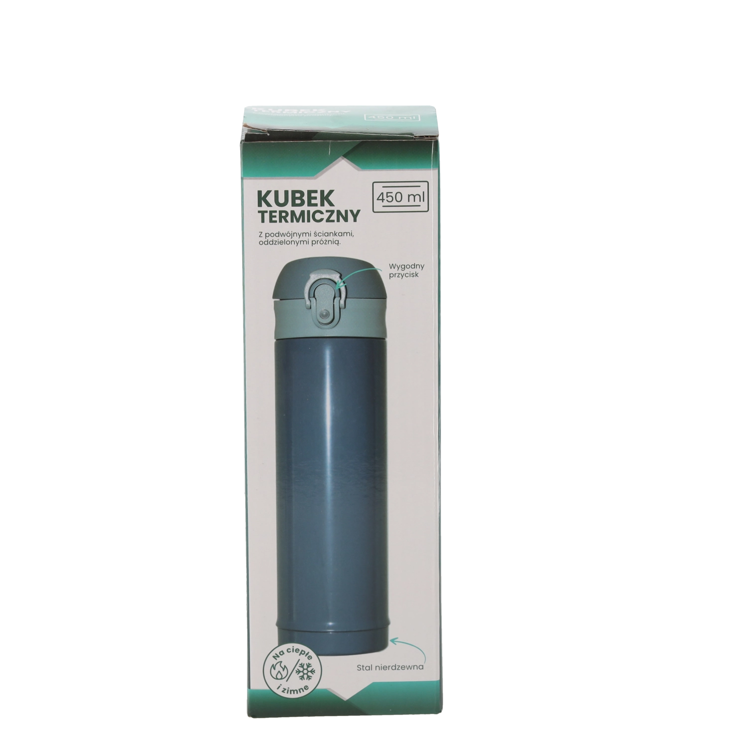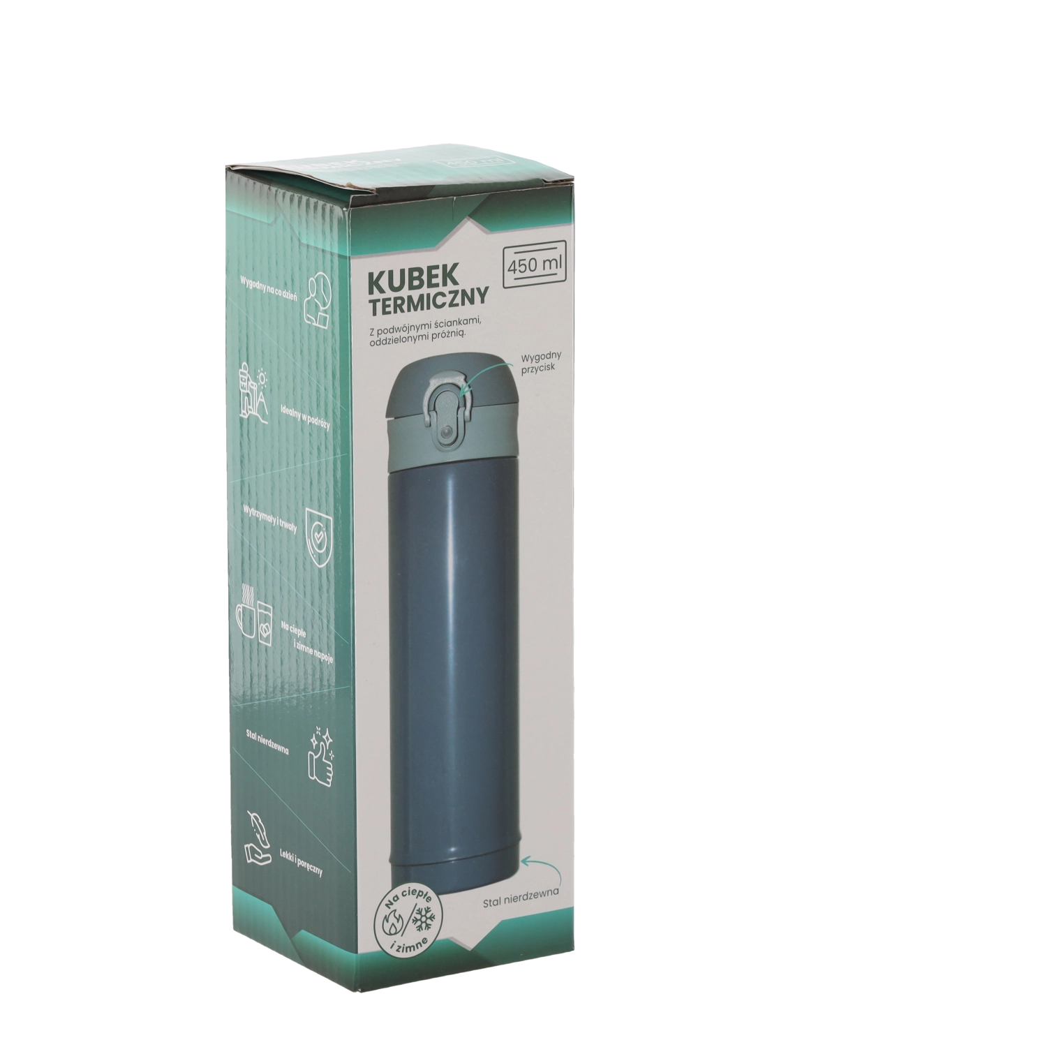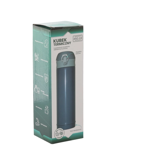 Praktyczny kubek termiczny o pojemności 450 ml łączy nowoczesny design i świetne właściwości izolacyjne. Próżniowa konstrukcja ze stali nierdzewnej utrzymuje stabilną temperaturę napoju aż do 6 godzin, więc kawę, herbatę czy wodę wypijesz kiedy tylko chcesz w ciągu dnia. Matowa powierzchnia jest przyjemna w dotyku i odporna na odciski palców.