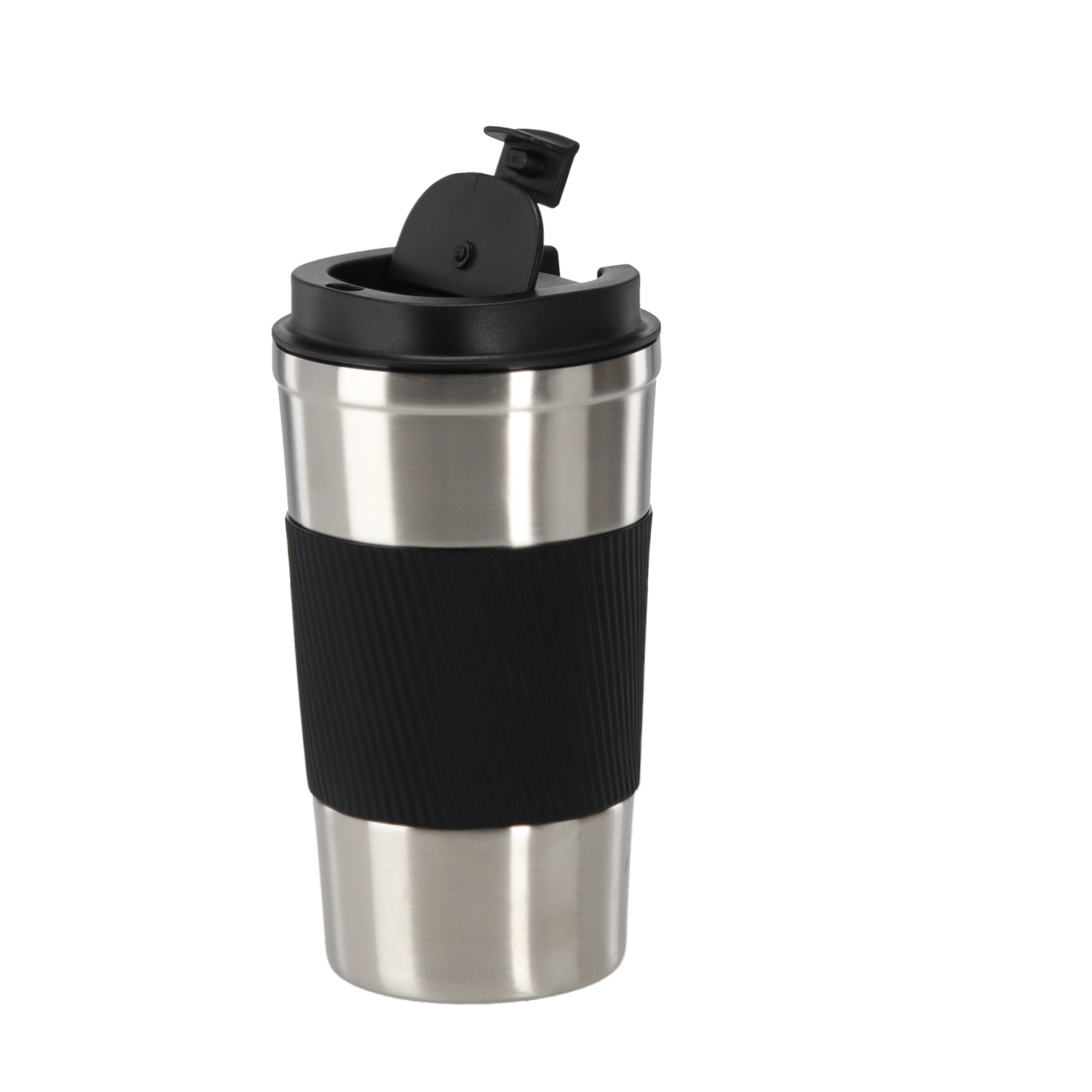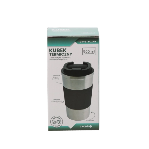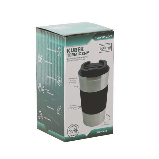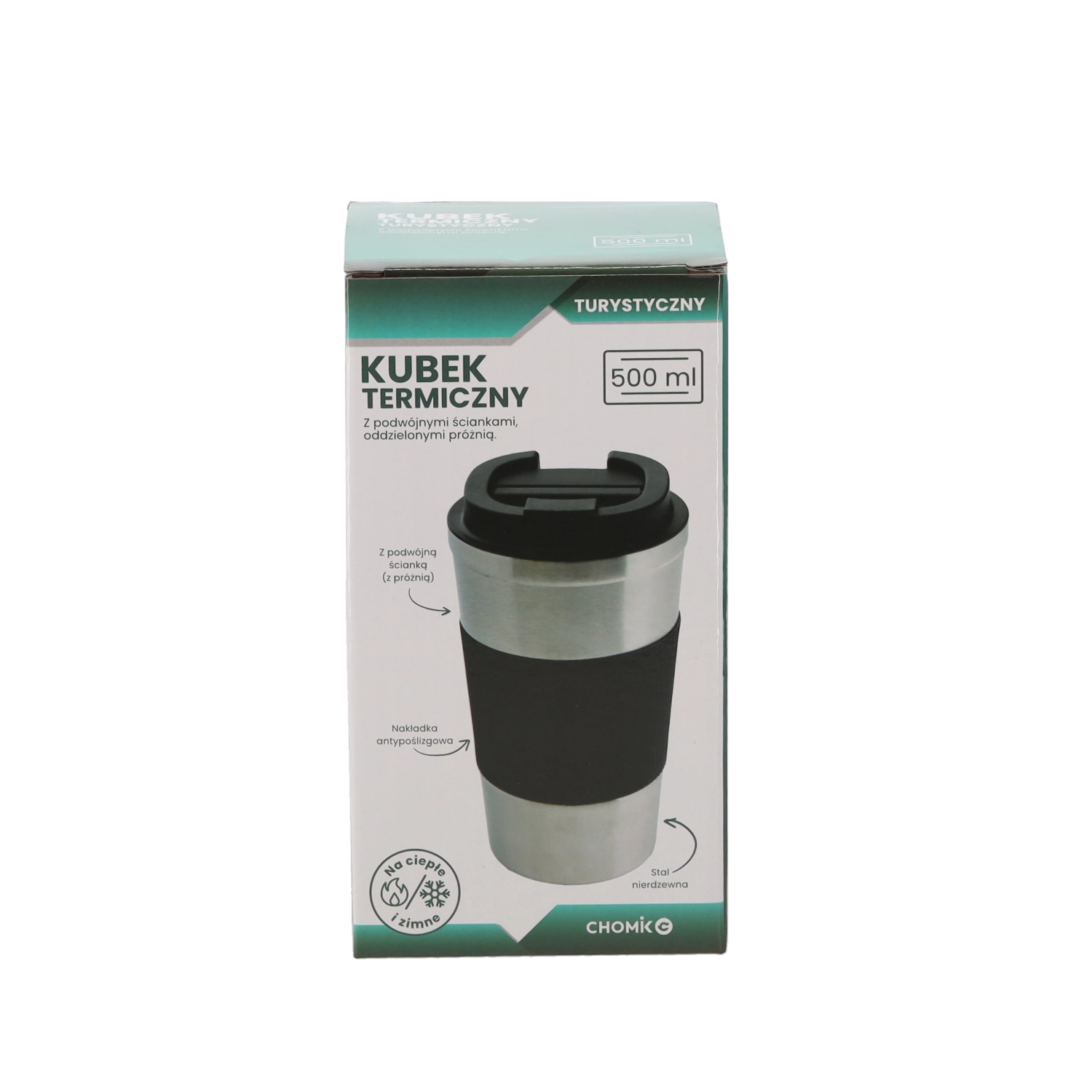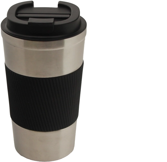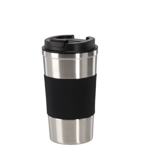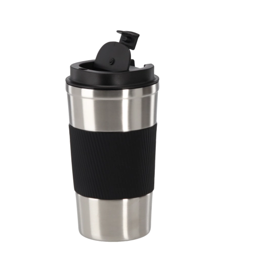 Teksturowany silikonowy rękaw pośrodku korpusu zapewnia pewne trzymanie i dodatkową izolację cieplną, dzięki czemu kubek jest wygodny nawet z gorącym napojem.