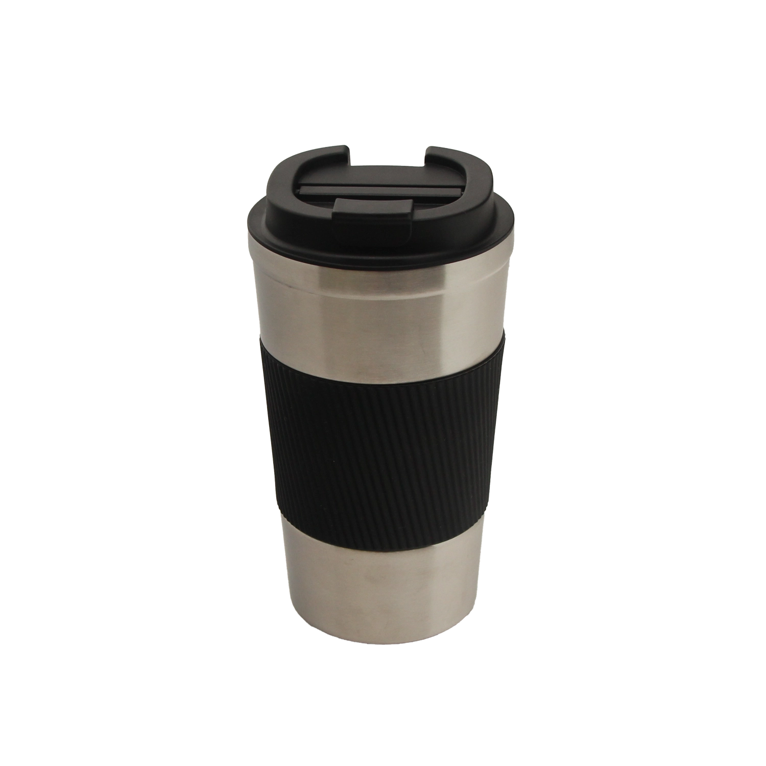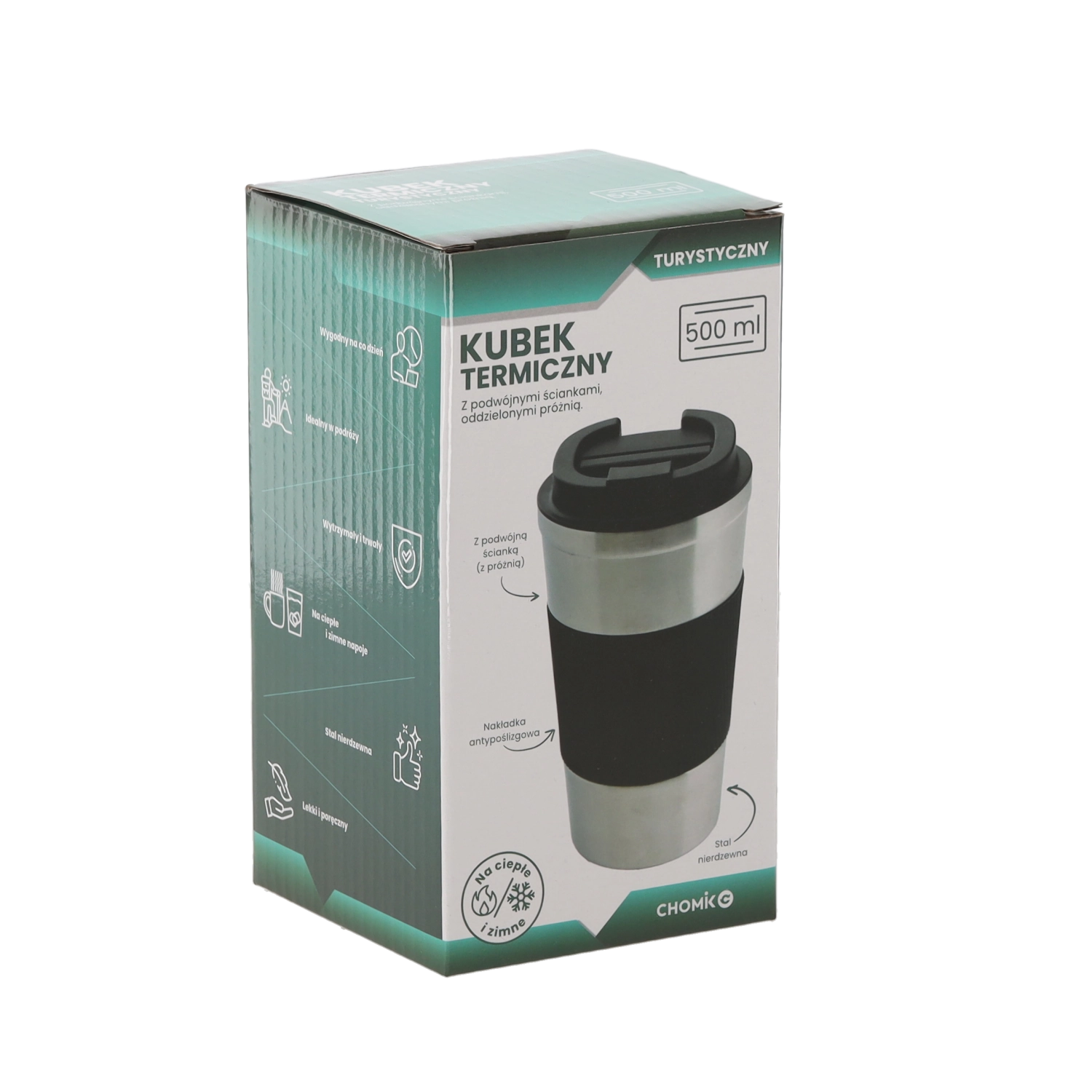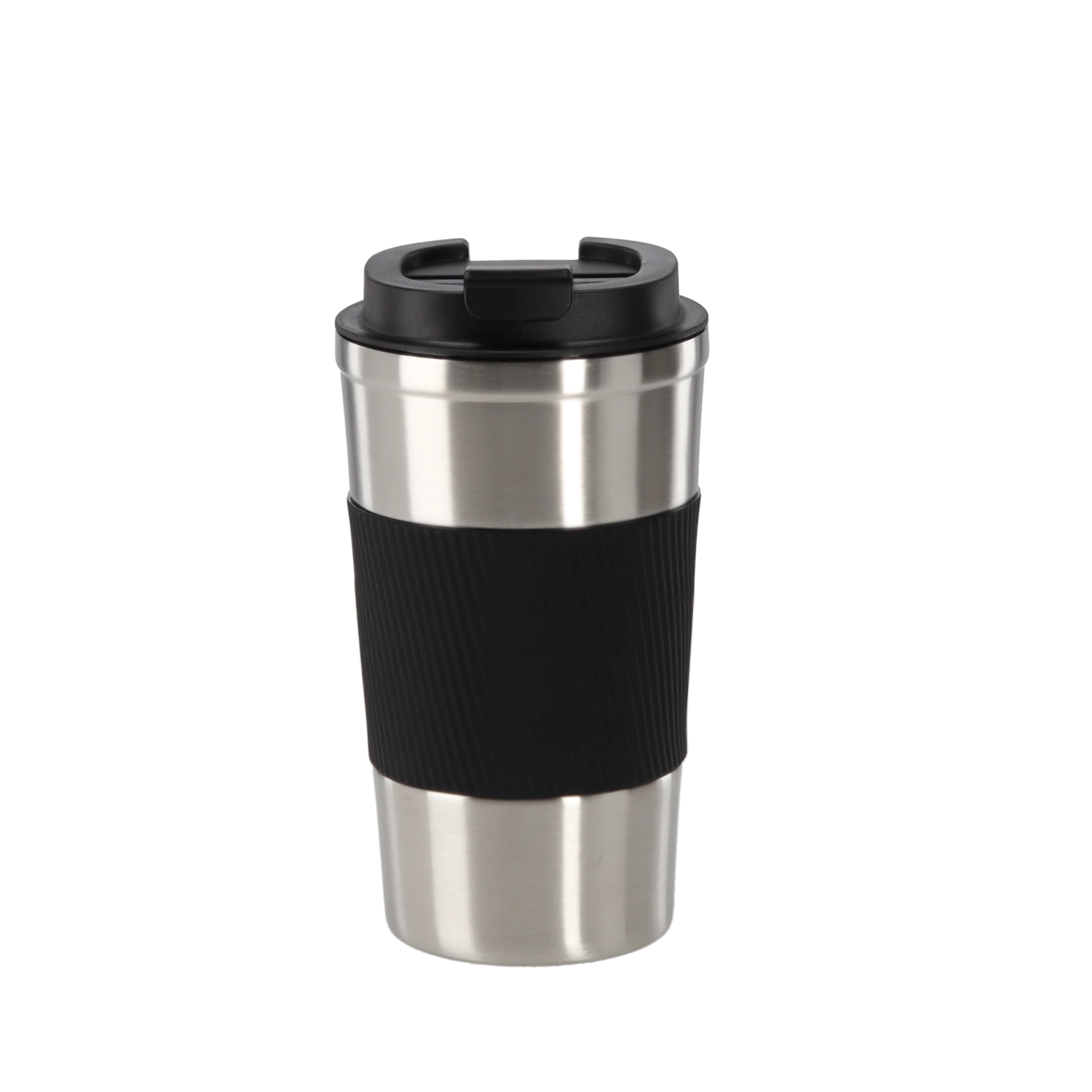 Teksturowany silikonowy rękaw pośrodku korpusu zapewnia pewne trzymanie i dodatkową izolację cieplną, dzięki czemu kubek jest wygodny nawet z gorącym napojem.
