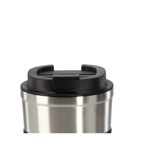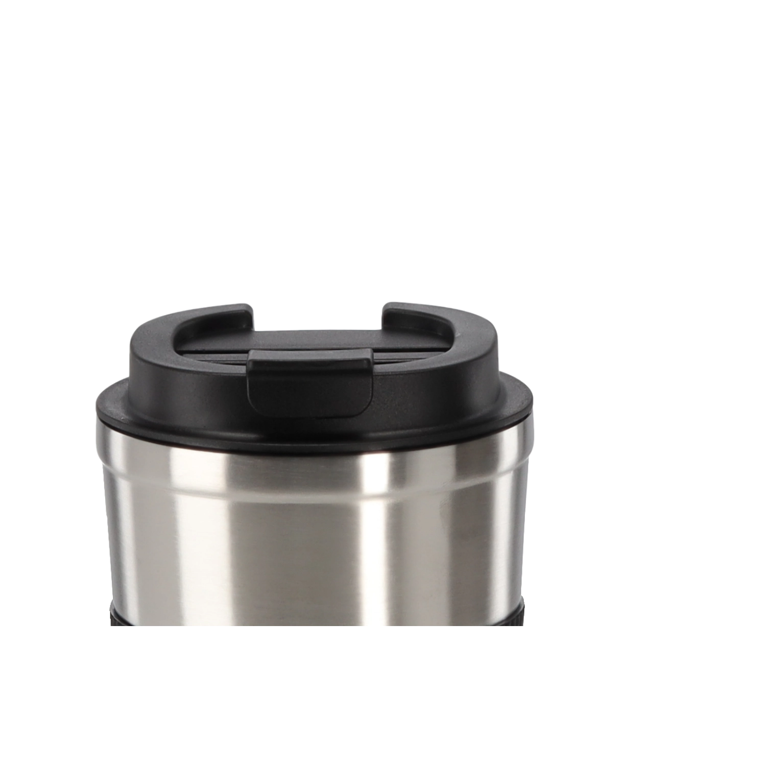 Stylowy kubek termiczny w oryginalnym stalowym wykończeniu jest idealny do gorącej kawy i zimnych napojów. Podwójna ścianka z konstrukcją próżniową pomaga dłużej utrzymać pożądaną temperaturę, a teksturowany silikonowy pasek zapewnia bezpieczny, nieślizgający się chwyt.