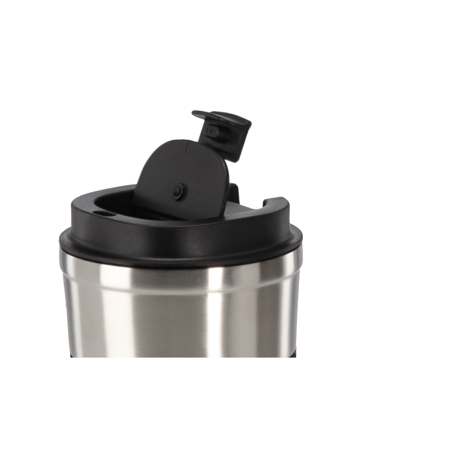 Dzięki wytrzymałemu wieczku z PP z uchylnym ustnikiem można go łatwo obsługiwać jedną ręką, a niechciane krople są zredukowane do minimum. Kubek pasuje do większości uchwytów w samochodzie, a po powrocie możesz bez obaw włożyć go do zmywarki.