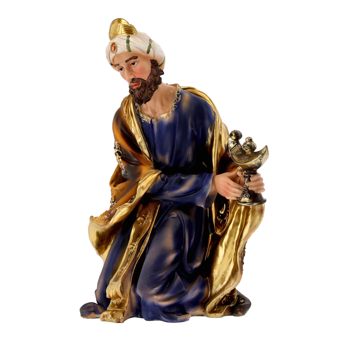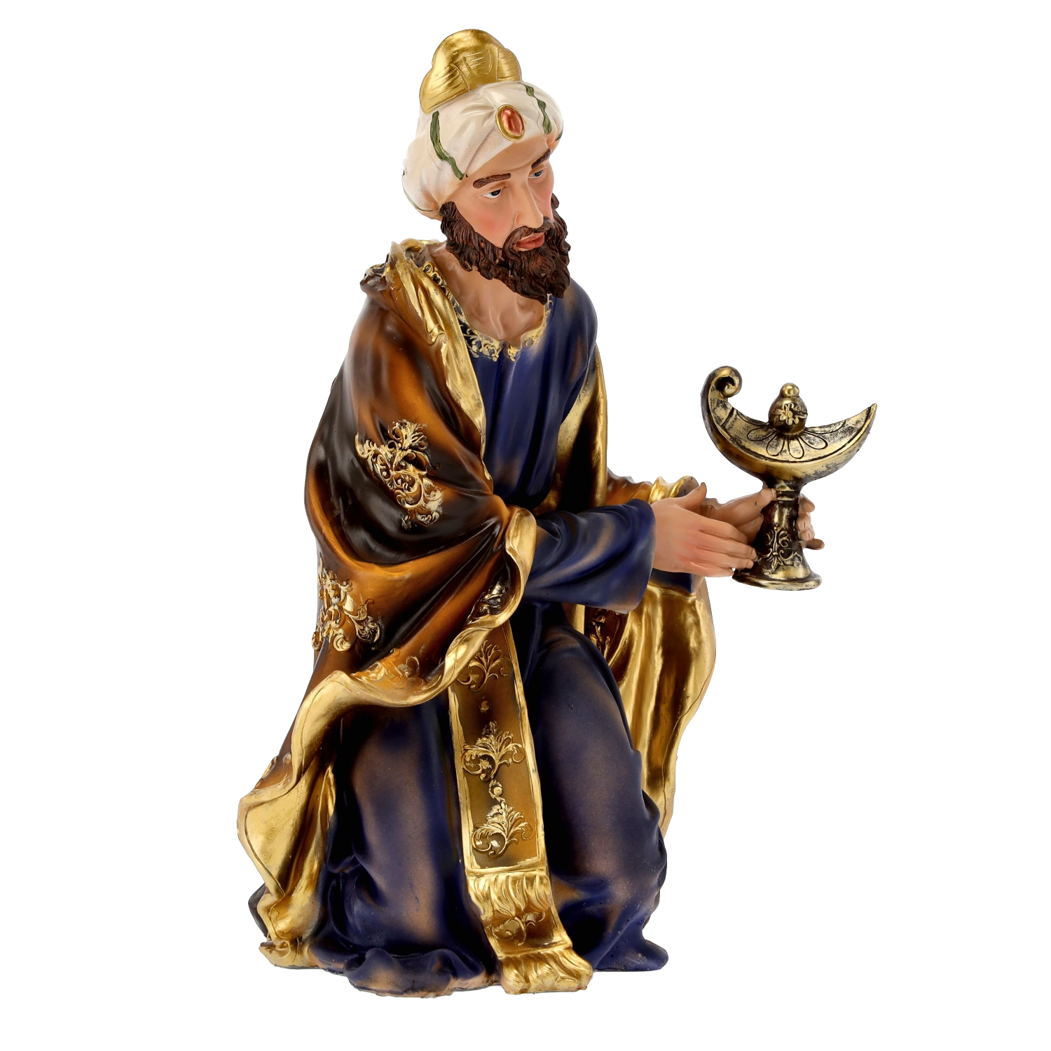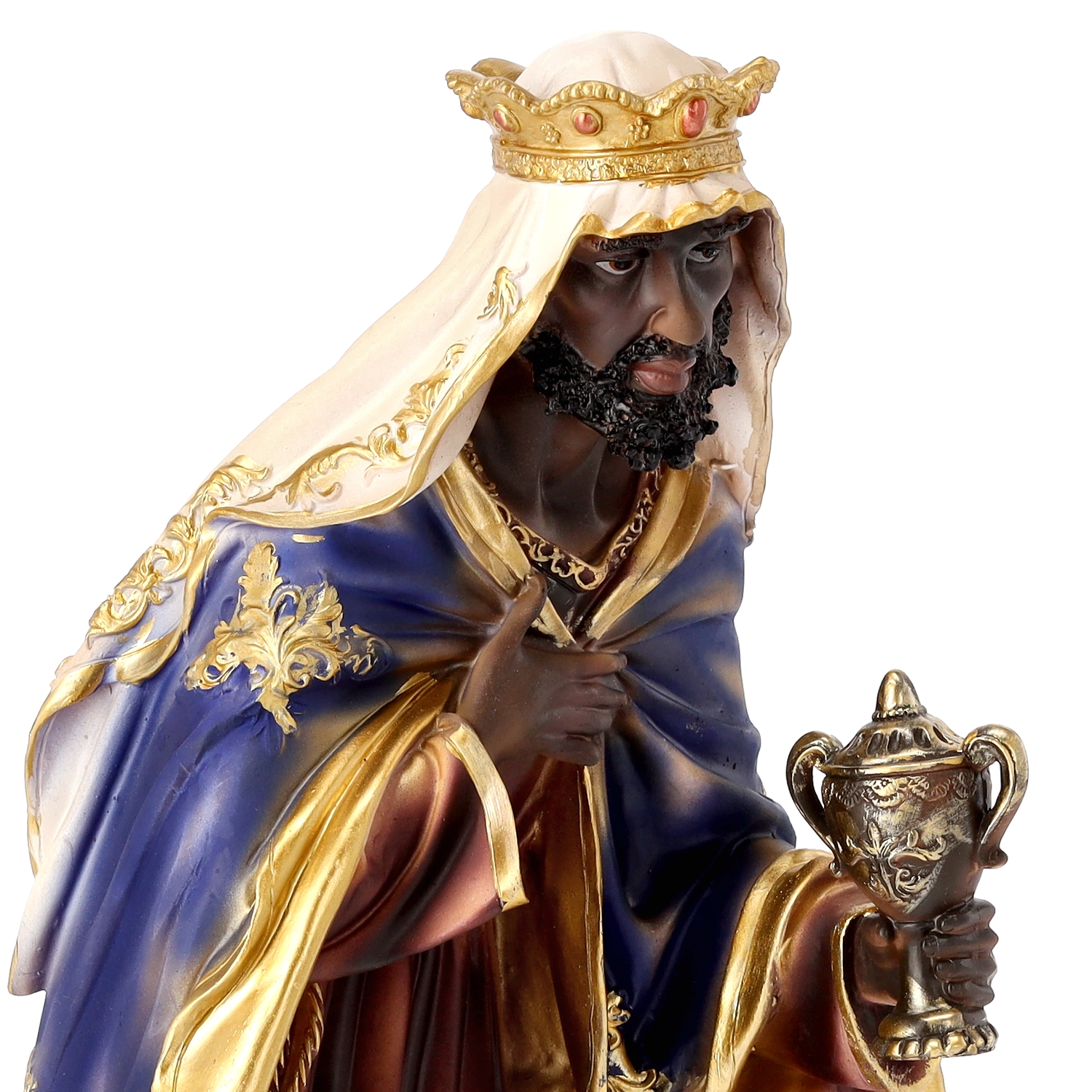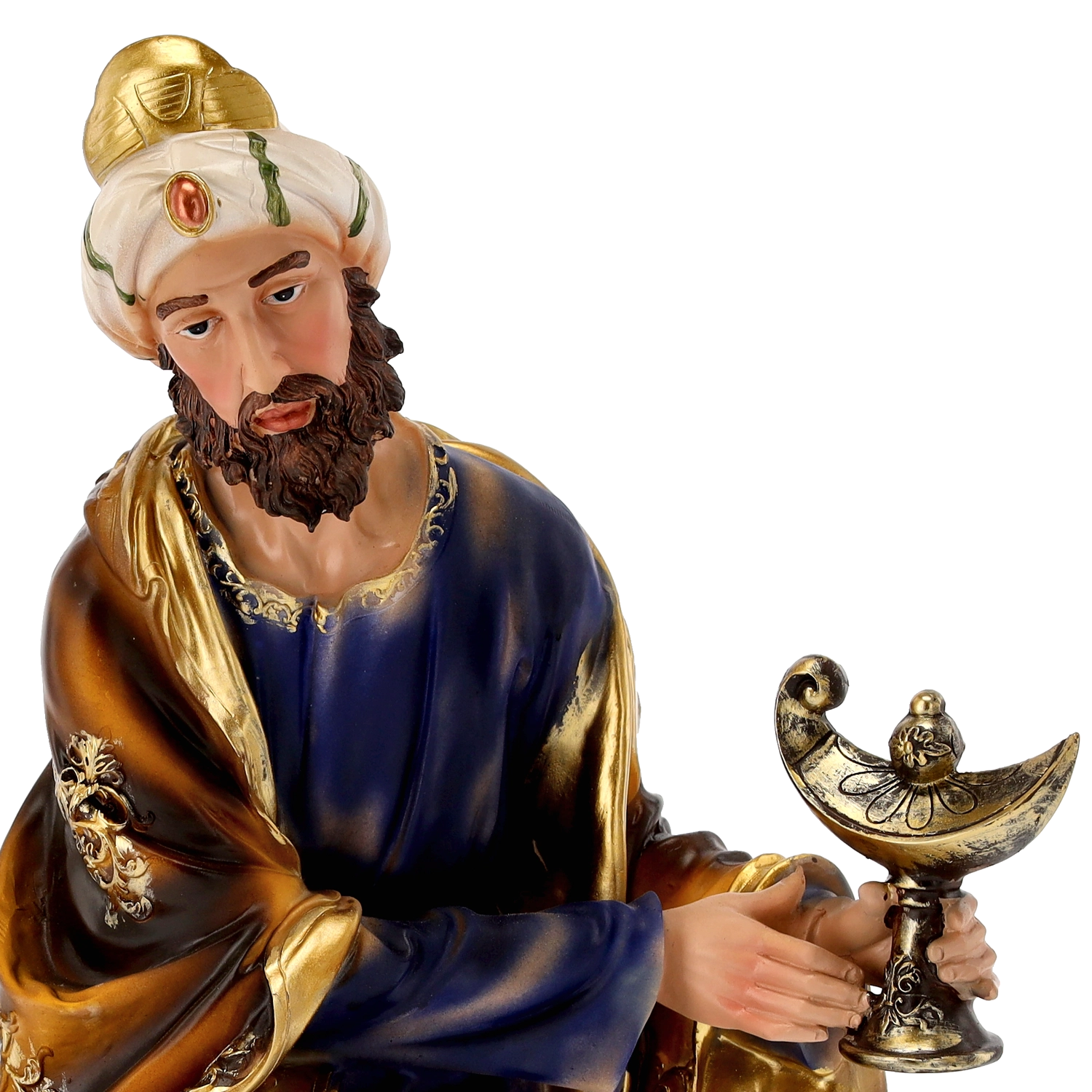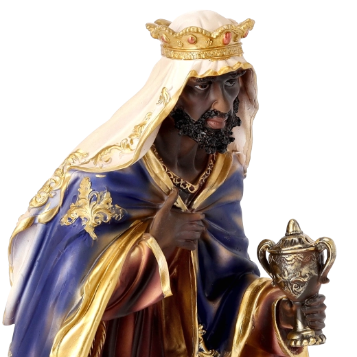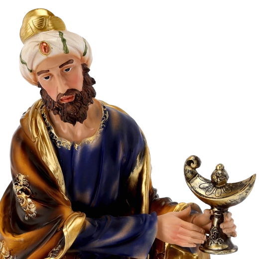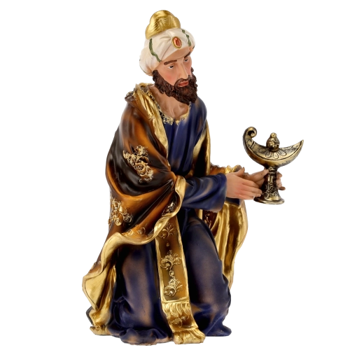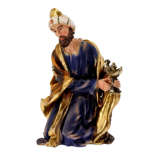 Kompletna scena szopki z realistycznymi detalami i ręcznym malowaniem doda Twoim Świętom tradycyjnego uroku. Poliresing (syntetyczna żywica) jest solidny, lekki i odporny na warunki pogodowe, więc figurki można bezpiecznie eksponować również na zewnątrz. Każdy element wyróżnia się subtelnym modelowaniem draperii, złotymi akcentami i stabilną podstawą.