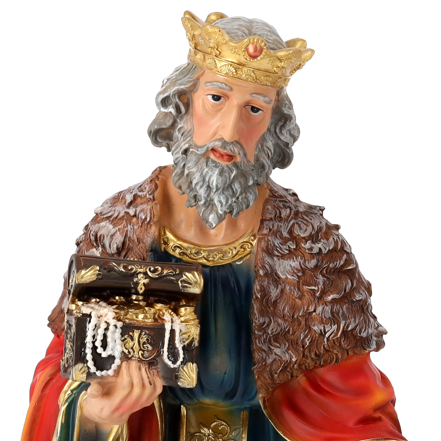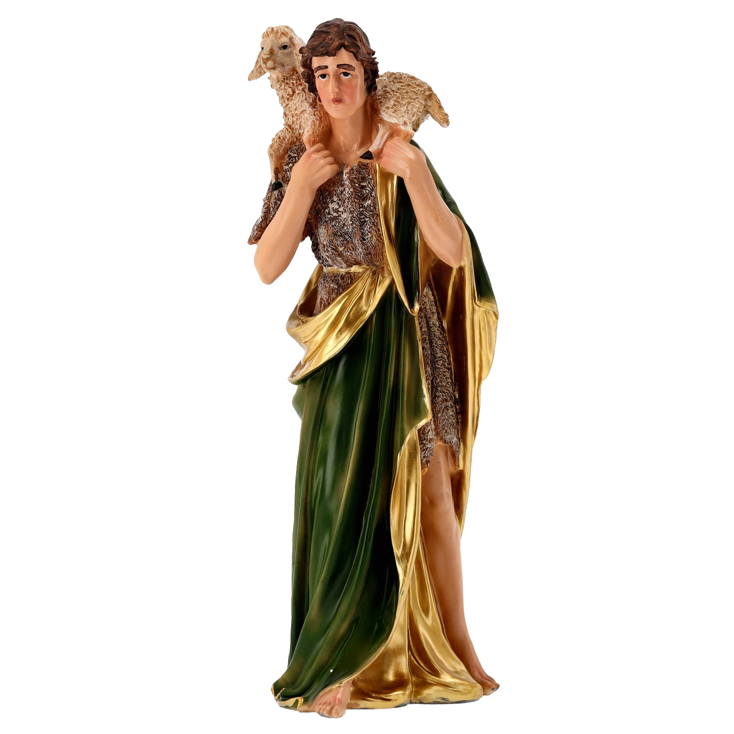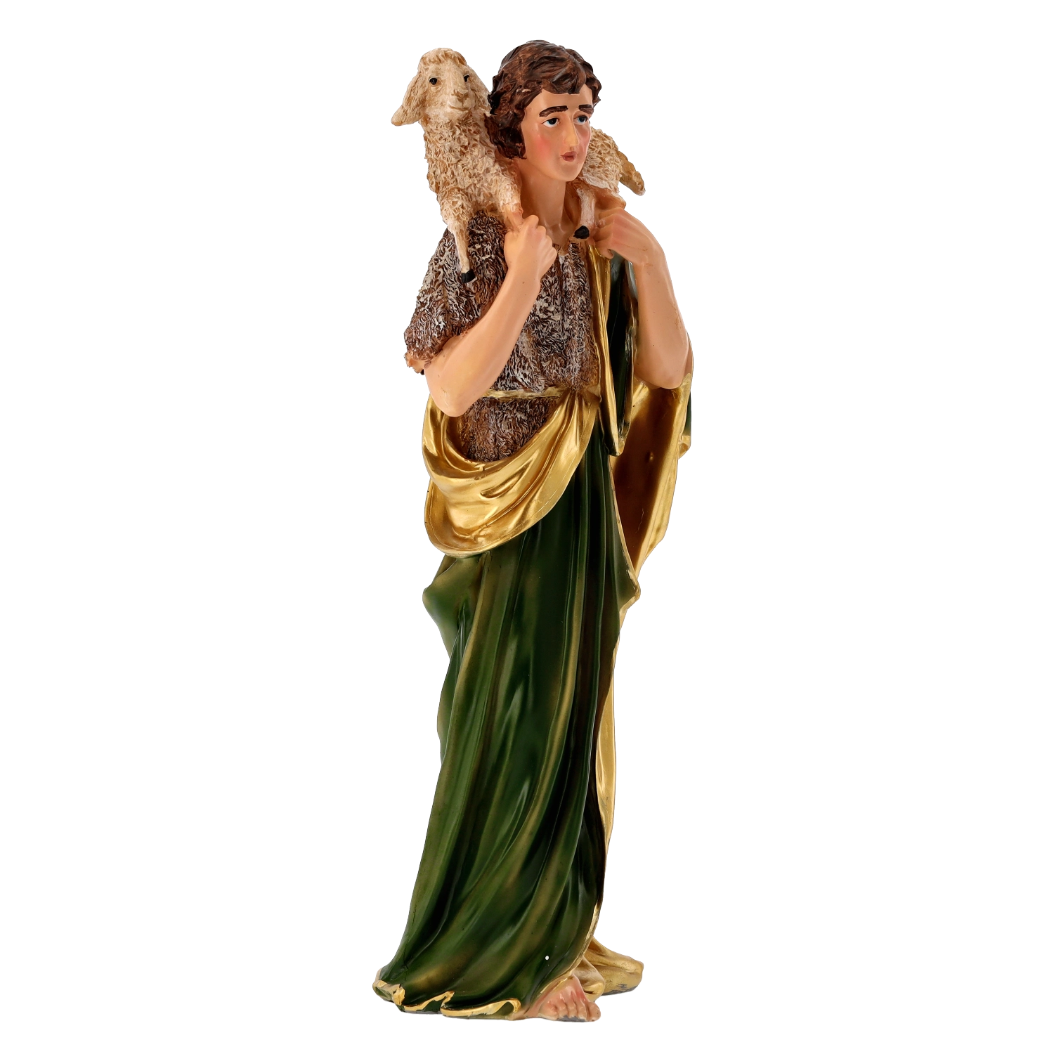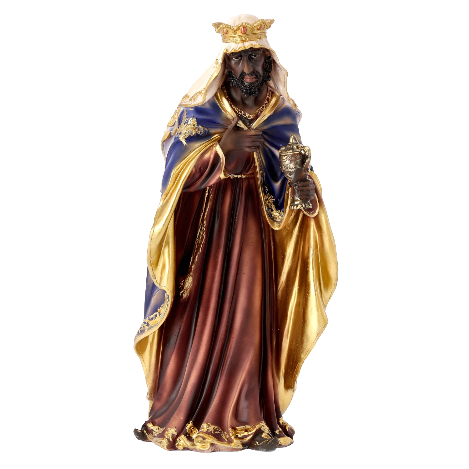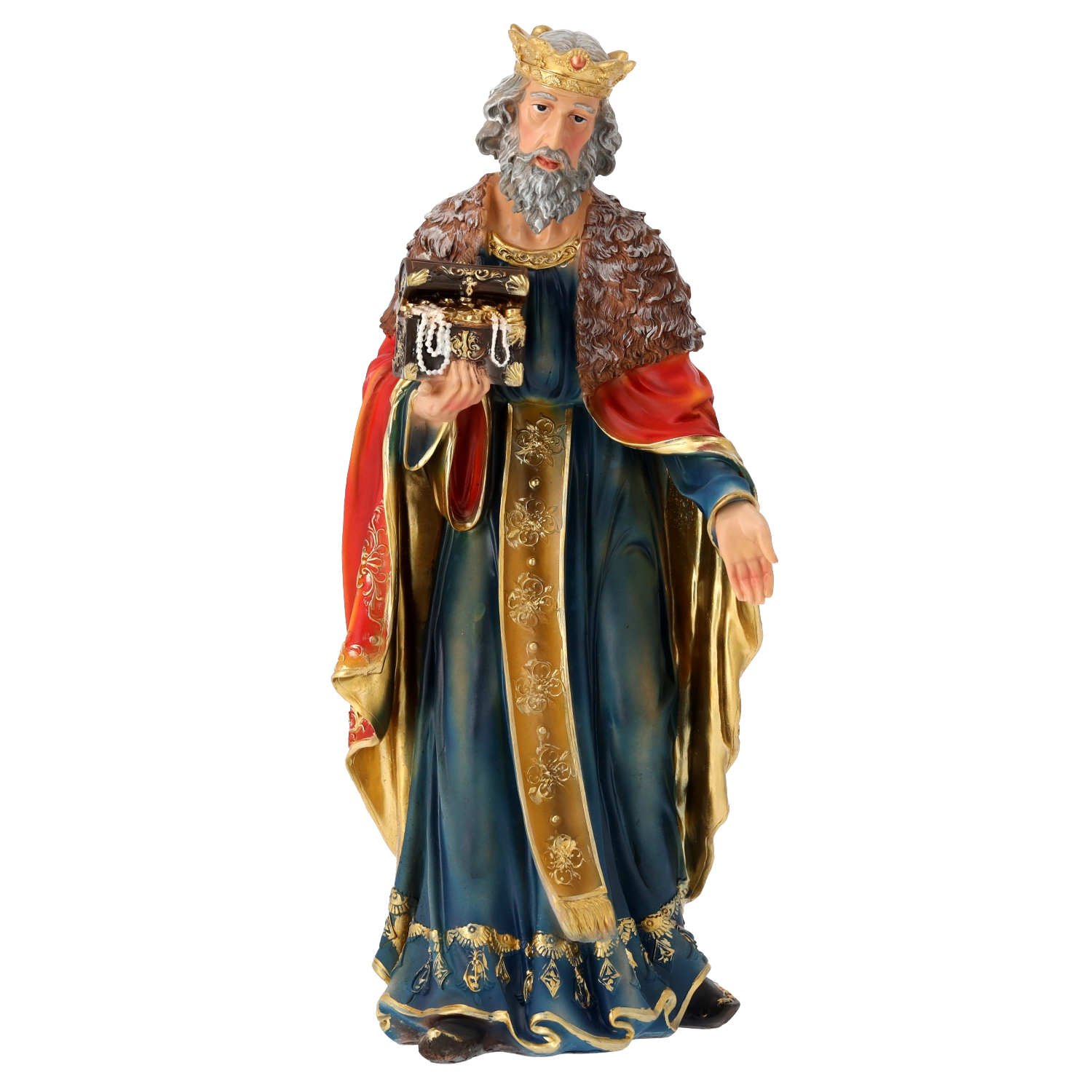 Kompletna scena szopki z realistycznymi detalami i ręcznym malowaniem doda Twoim Świętom tradycyjnego uroku. Poliresing (syntetyczna żywica) jest solidny, lekki i odporny na warunki pogodowe, więc figurki można bezpiecznie eksponować również na zewnątrz. Każdy element wyróżnia się subtelnym modelowaniem draperii, złotymi akcentami i stabilną podstawą.