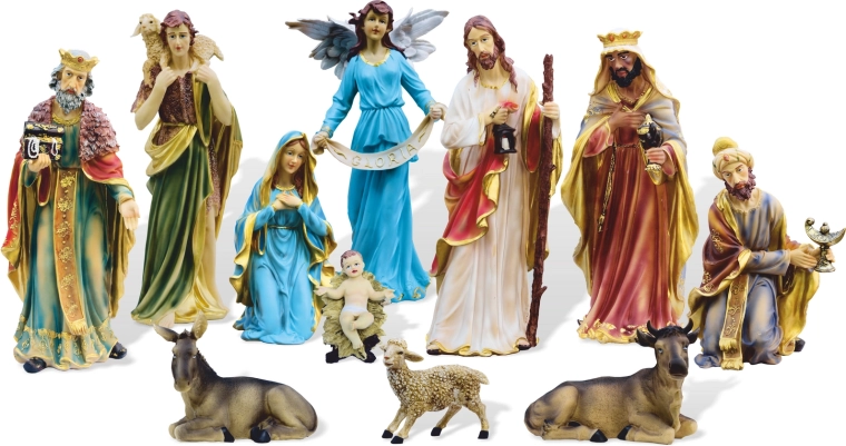 Zestaw obejmuje Dzieciątko Jezus w żłóbku, Maryję, Józefa, trzech mędrców, anioła, pasterza oraz zwierzęta (wół, osioł, owca). Wysokości do 60 cm zapewniają doskonałą widoczność w większych przestrzeniach – od domowych szopek, przez szkolne i gminne instalacje, po hole wejściowe i kaplice.