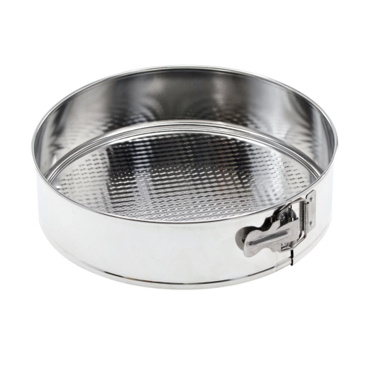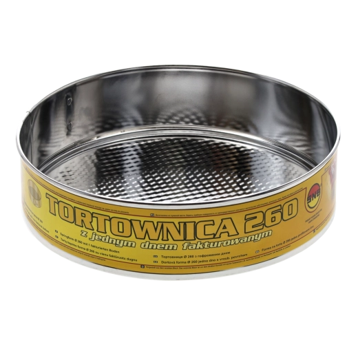 Praktyczna forma do tortu o średnicy 26 cm z wytrzymałej ocynkowanej stali, ułatwiająca przygotowanie tortów i ciast. Dzięki wyjmowanemu dnu z fakturowaną powierzchnią desery łatwo się wyjmują i mają idealnie gładki wygląd. Wygodna klamra umożliwia szybkie otwarcie formy i serwowanie bezpośrednio na dnie. Aby chronić powierzchnię przed kwaśnymi składnikami, zalecamy użycie papieru do pieczenia.