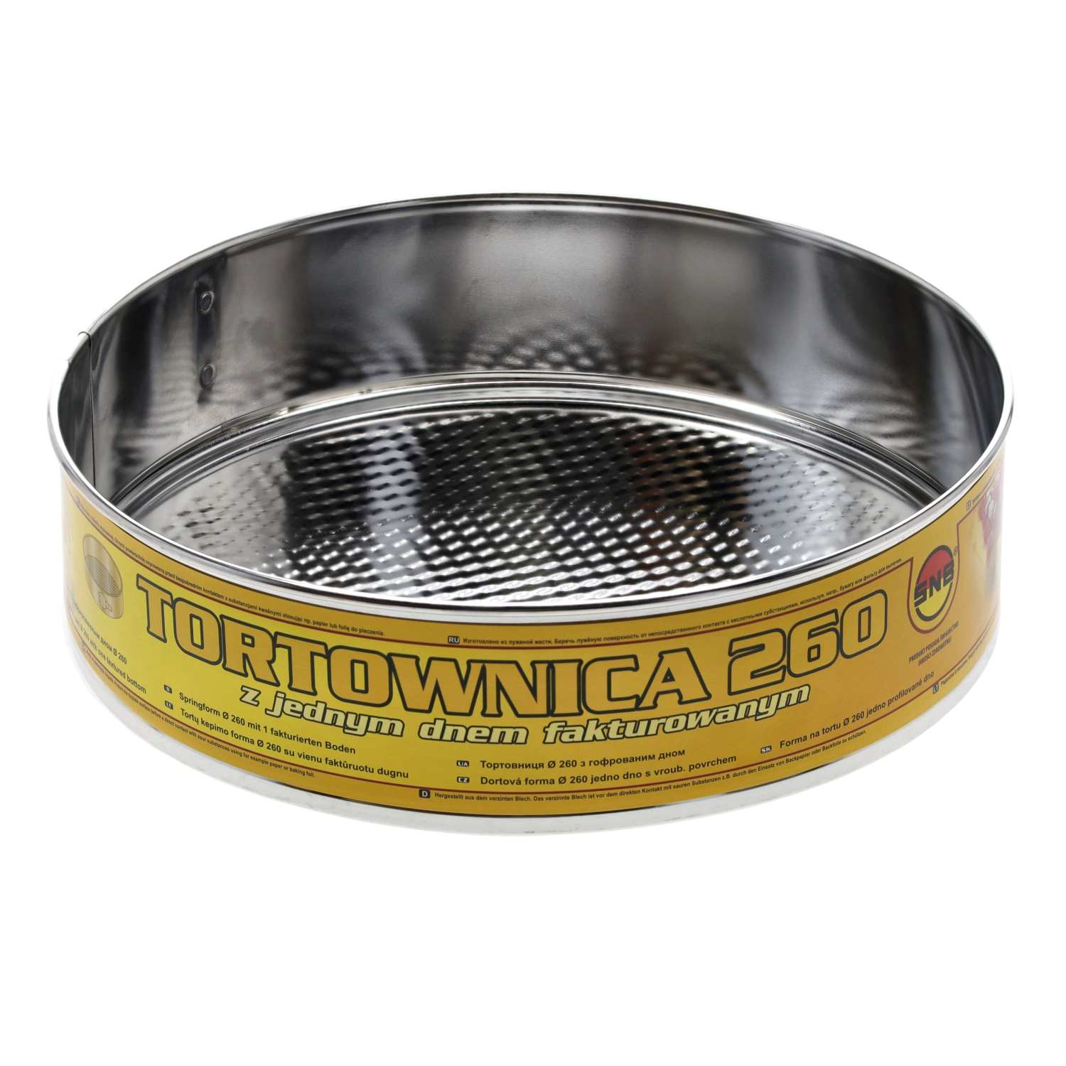 Szukasz niezawodnej formy do tortów, która sprawdzi się przy codziennym pieczeniu i odświętnych deserach? Okrągła forma SNB o średnicy 26 cm wykonana jest z ocynkowanej stali, co zapewnia doskonałą trwałość i długą żywotność. Fakturowane, wyjmowane dno ułatwia wyjmowanie spodów i nadaje im atrakcyjną powierzchnię.