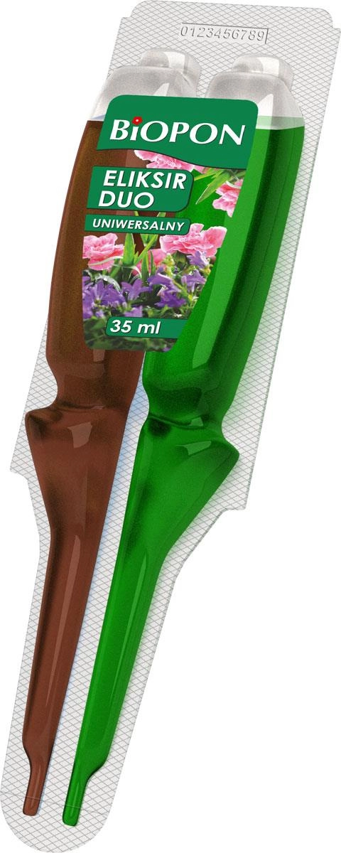 Biopon Eliksir Duo to sprytne rozwiązanie dla słabo rosnących lub słabo kwitnących roślin ozdobnych. Dwie oddzielne komory przechowują składniki aktywne osobno, co zapewnia ich stabilność i wysoką skuteczność. Mieszanie następuje dopiero w podłożu, gdzie eliksir działa celowanie i synergicznie – efektem jest widocznie lepsza kondycja, intensywniejsza barwa liści oraz dłuższe, bardziej obfite kwitnienie.