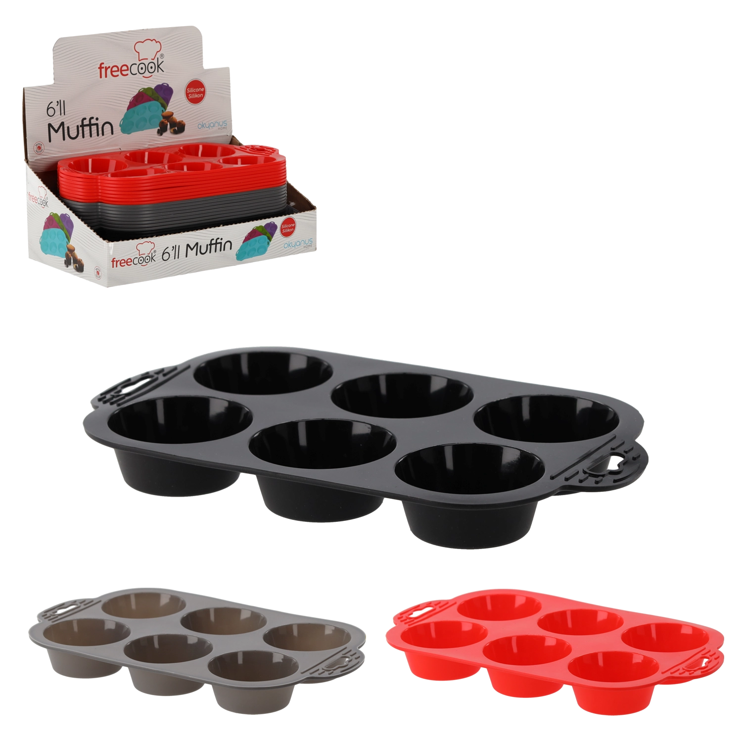 - Silikonowa forma do muffinek z 6 zagłębieniami i bocznymi uchwytami