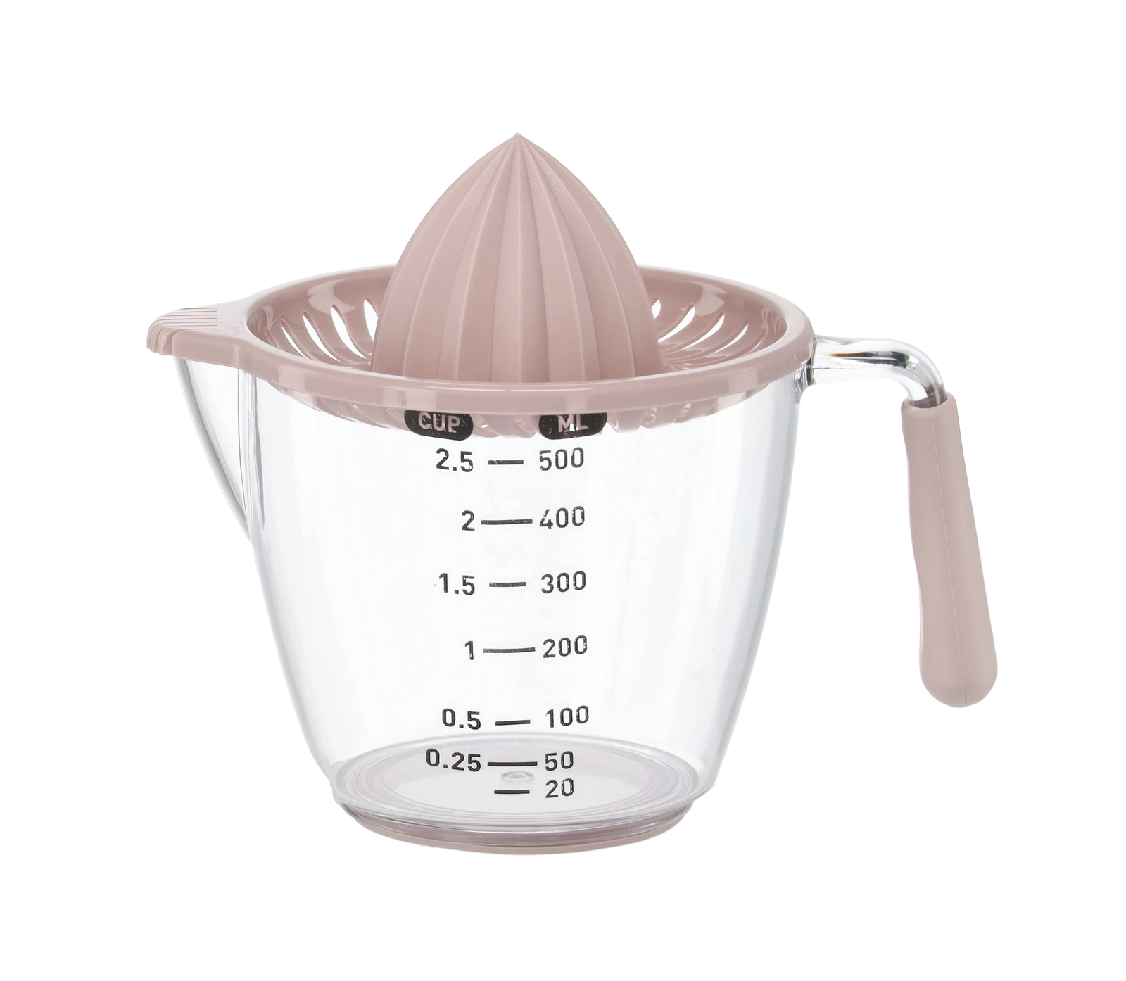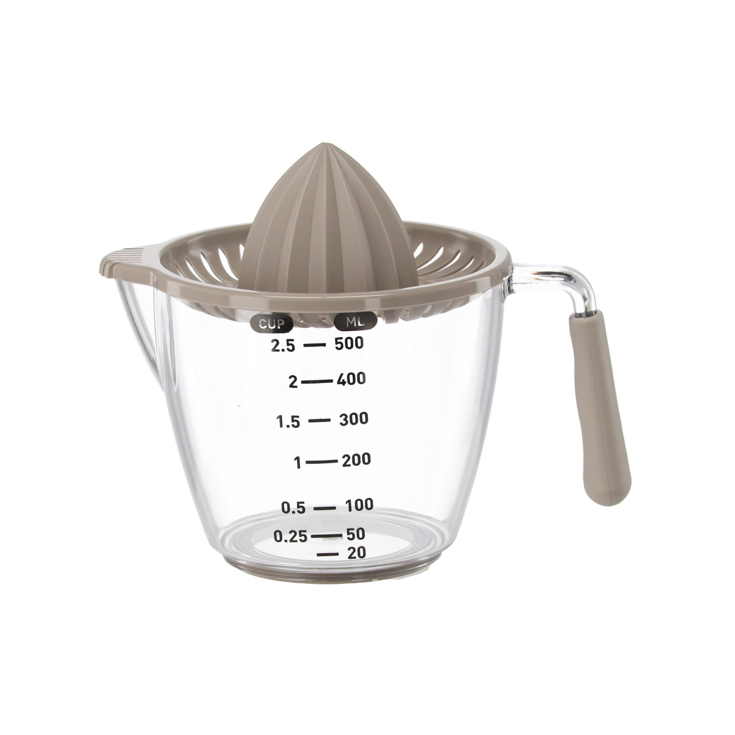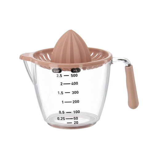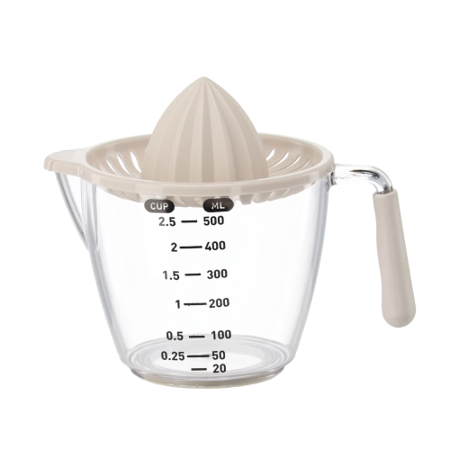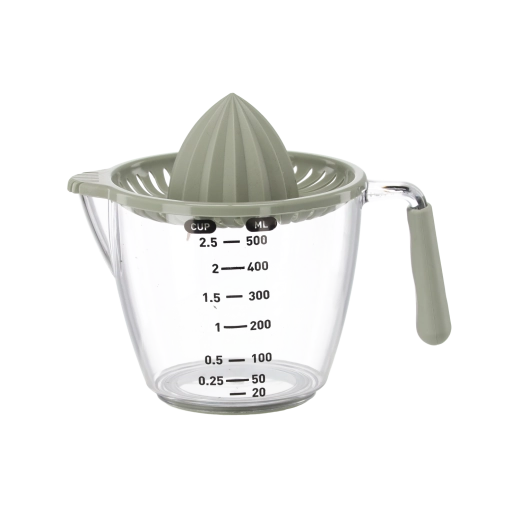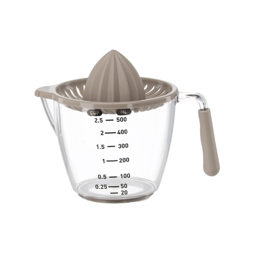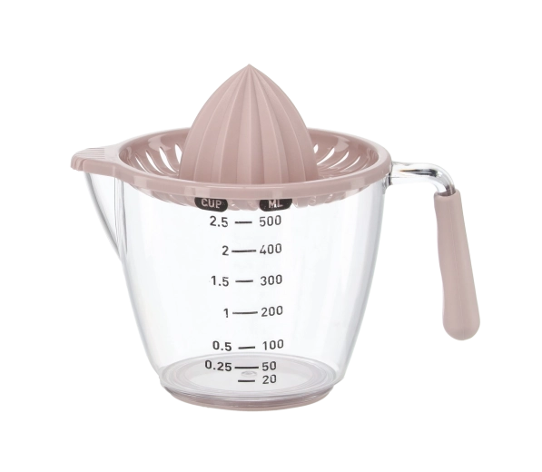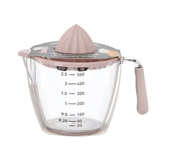 Ten kompaktowy, ręczny wyciskacz pozwala wyciskać cytryny, limonki i pomarańcze bezpośrednio do przezroczystego dzbanka z miarką z podziałką w mililitrach i filiżankach. Żłobkowany stożek skutecznie ekstrahuje sok, a sitko zatrzymuje pestki i miąższ. Dzięki wygodnemu uchwytowi i praktycznej wylewce przelejesz płyn bez kapania i bałaganu.
