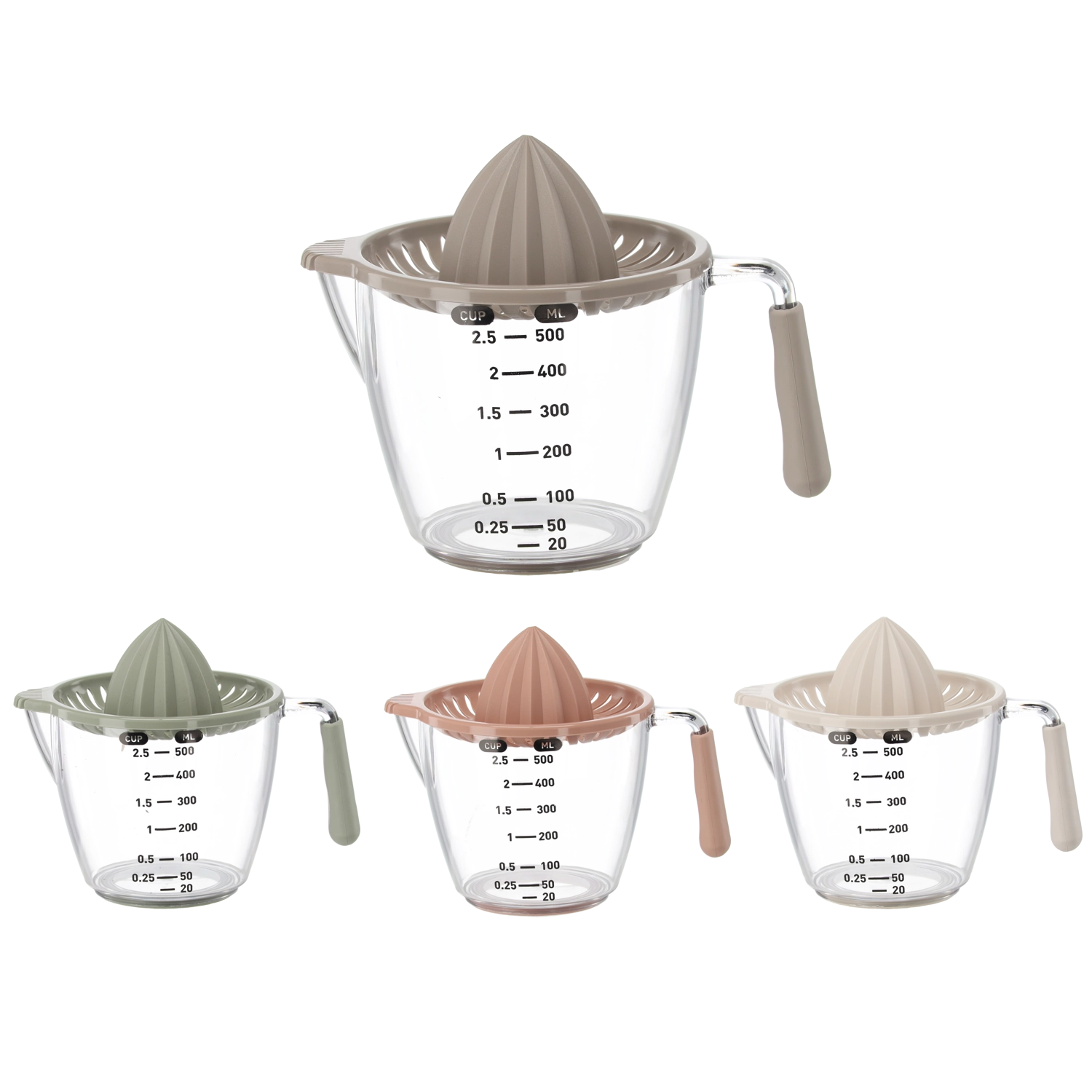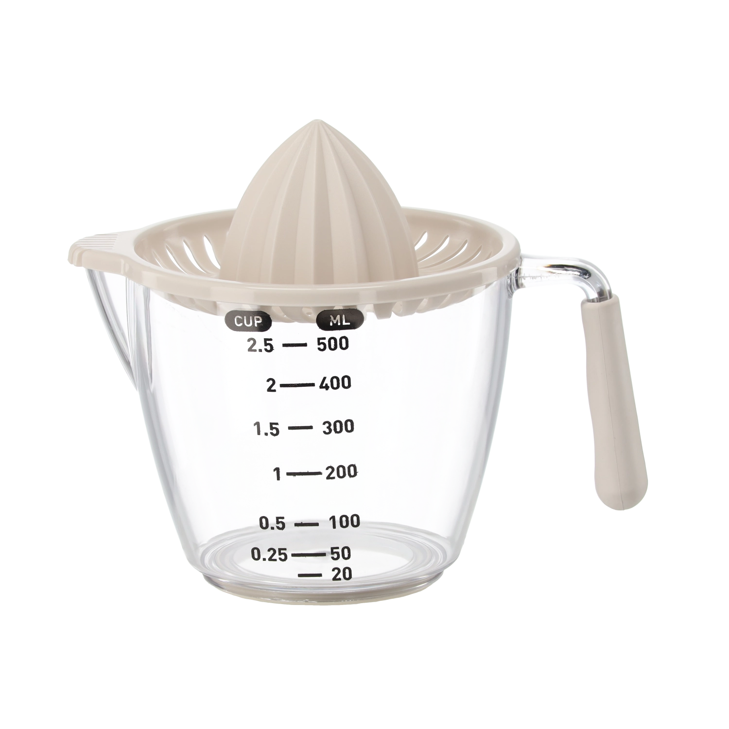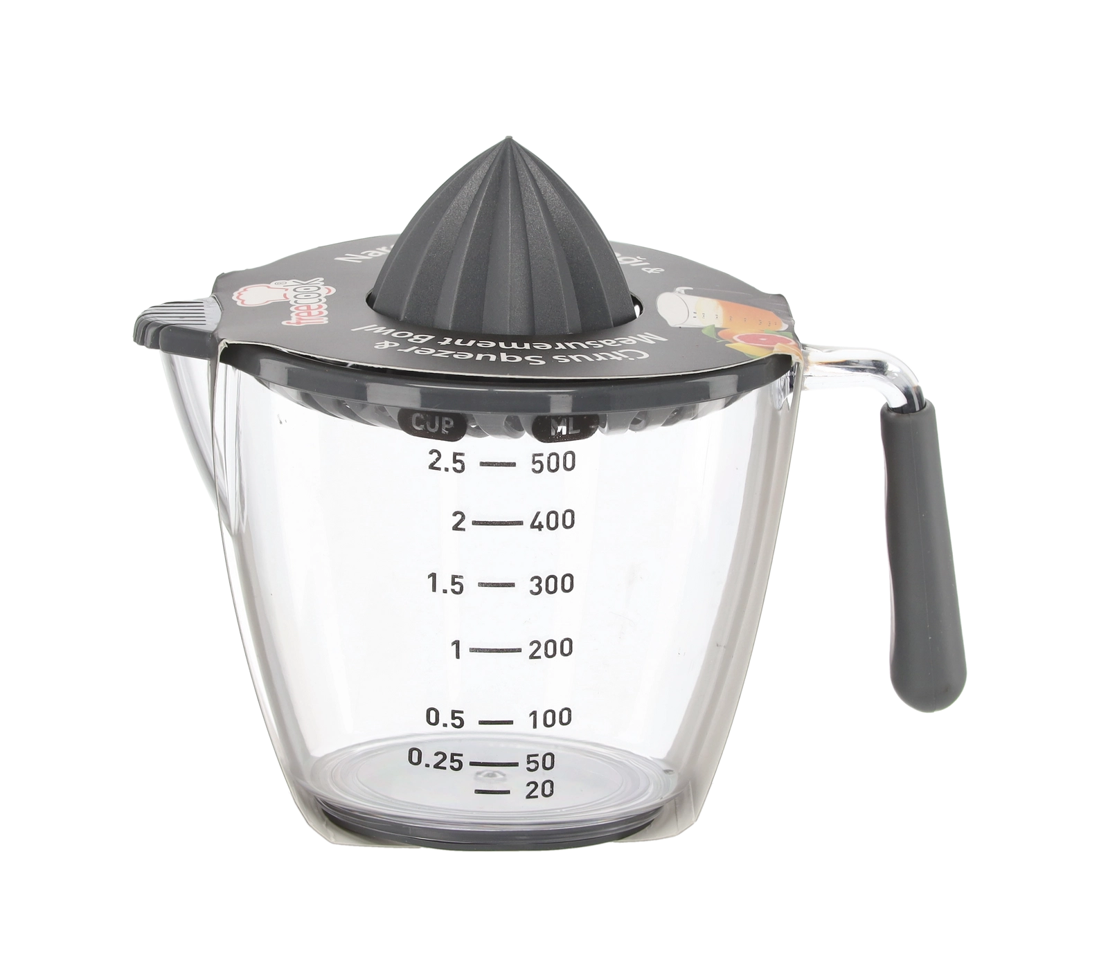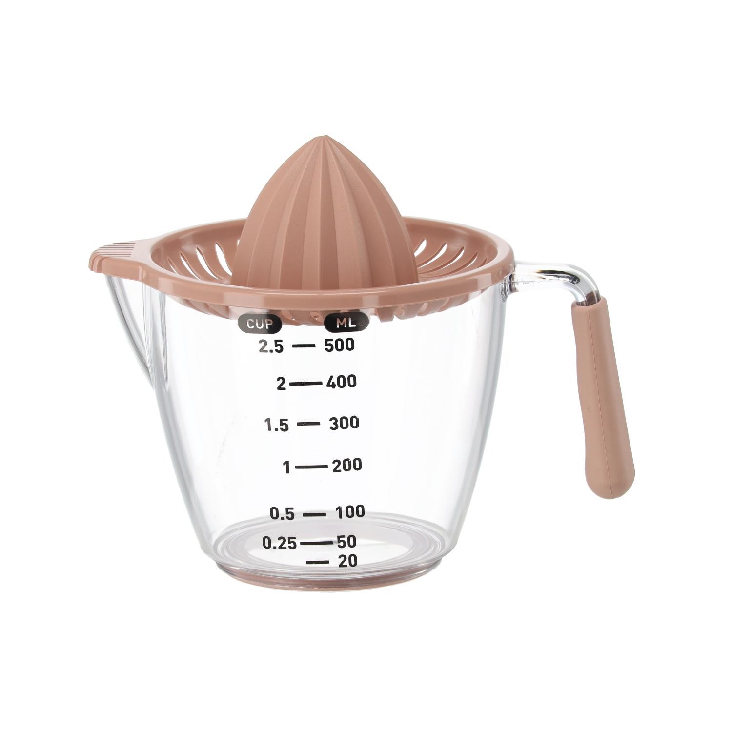 Ten kompaktowy, ręczny wyciskacz pozwala wyciskać cytryny, limonki i pomarańcze bezpośrednio do przezroczystego dzbanka z miarką z podziałką w mililitrach i filiżankach. Żłobkowany stożek skutecznie ekstrahuje sok, a sitko zatrzymuje pestki i miąższ. Dzięki wygodnemu uchwytowi i praktycznej wylewce przelejesz płyn bez kapania i bałaganu.