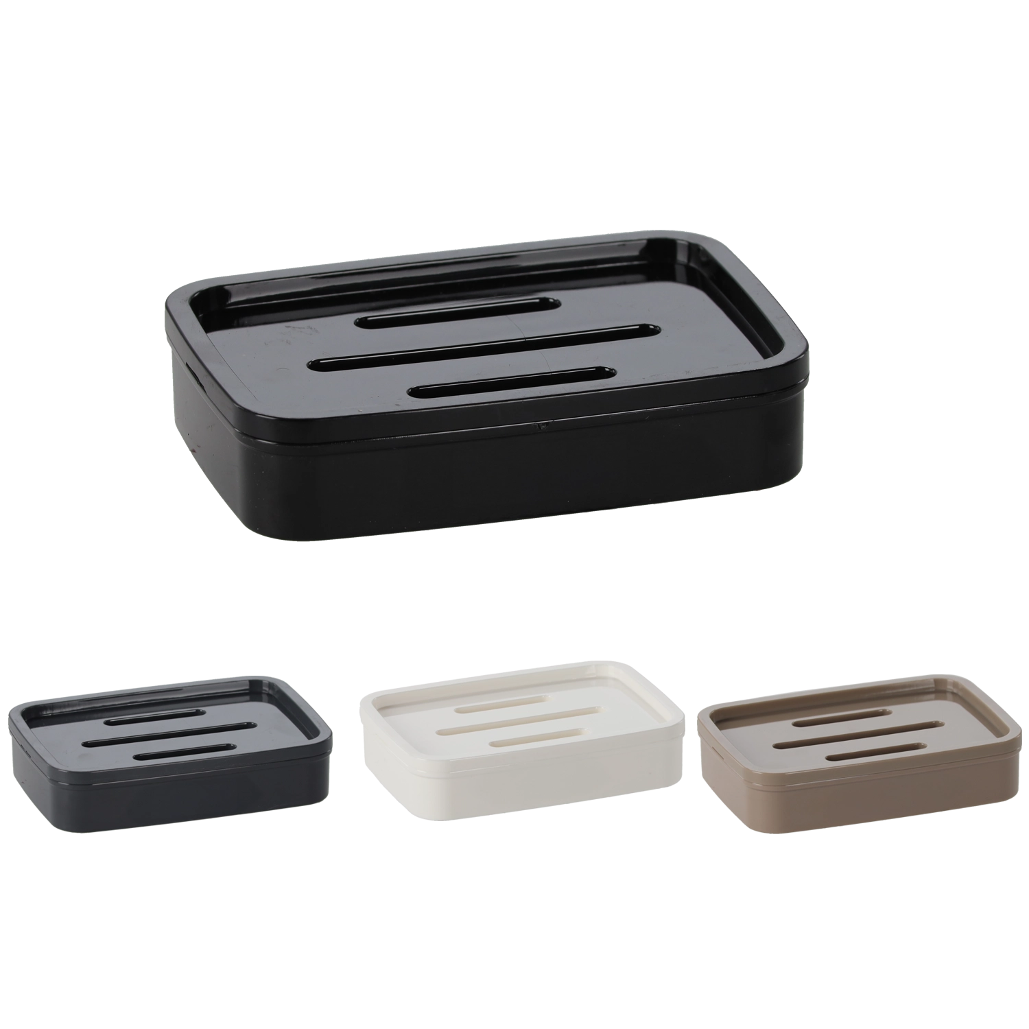 Trzy podłużne szczeliny w pokrywce/wkładce niezawodnie odprowadzają wodę do dolnej części, dzięki czemu mydło pozostaje suche i twarde.