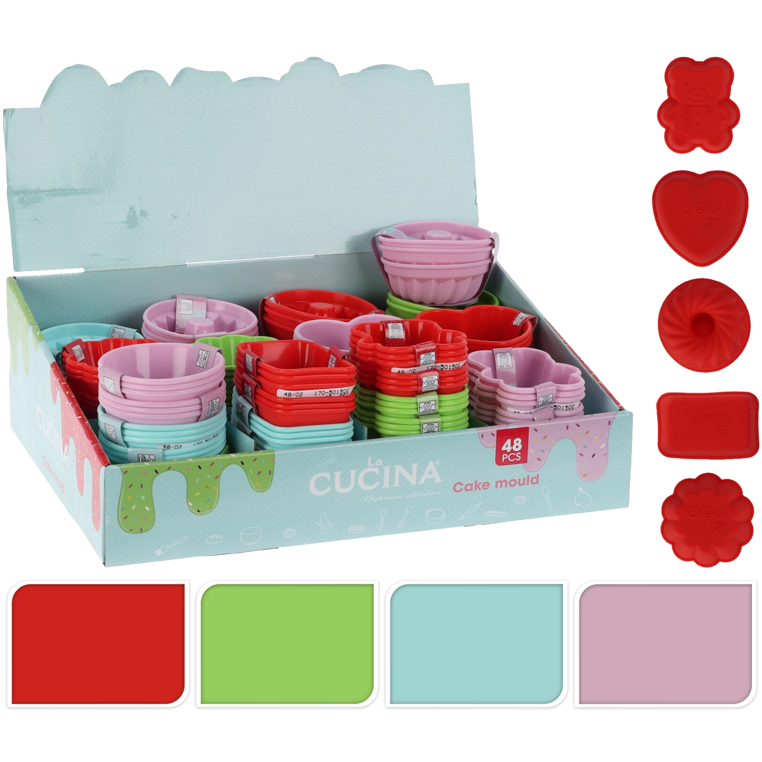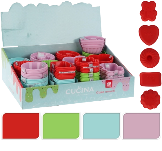 Ten uniwersalny zestaw oferuje wszystko, czego potrzebujesz do beztroskiego i wygodnego pieczenia w domu. Elastyczny silikon ułatwia obsługę, ciasto nie przywiera, a foremki są łatwe w czyszczeniu. Dzięki różnorodnym kształtom i kolorom przygotujesz atrakcyjne desery na każdą okazję – od dziecięcych przyjęć po rodzinne spotkania.